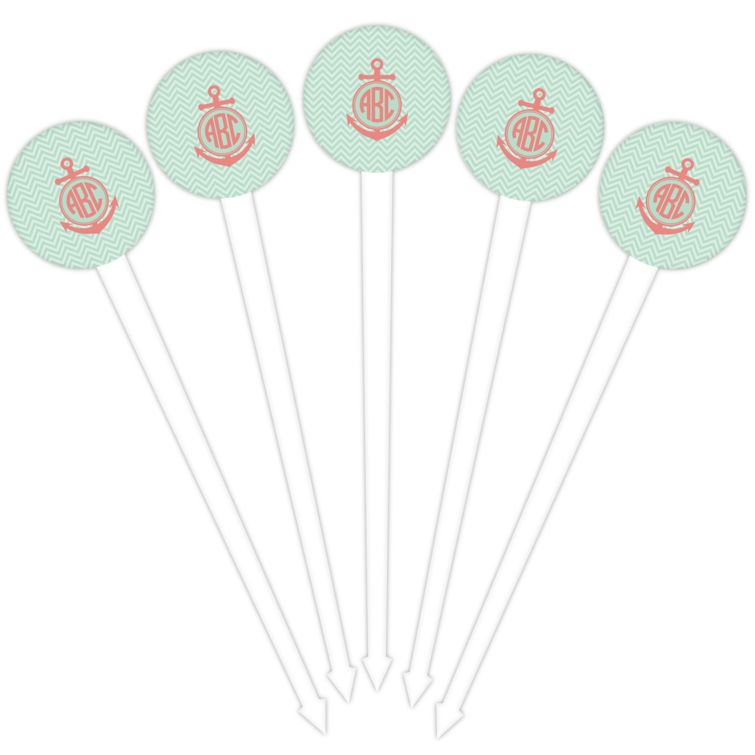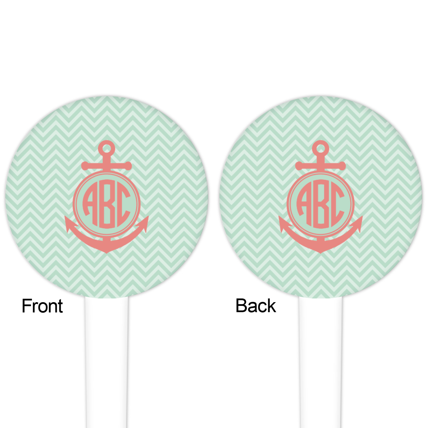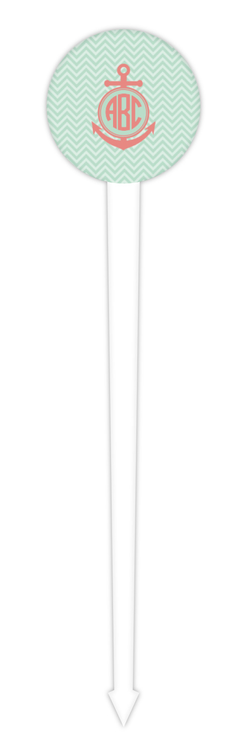 Coastal / Beach Style Designs for 4" Round Plastic Food Picks - White - Double-Sided