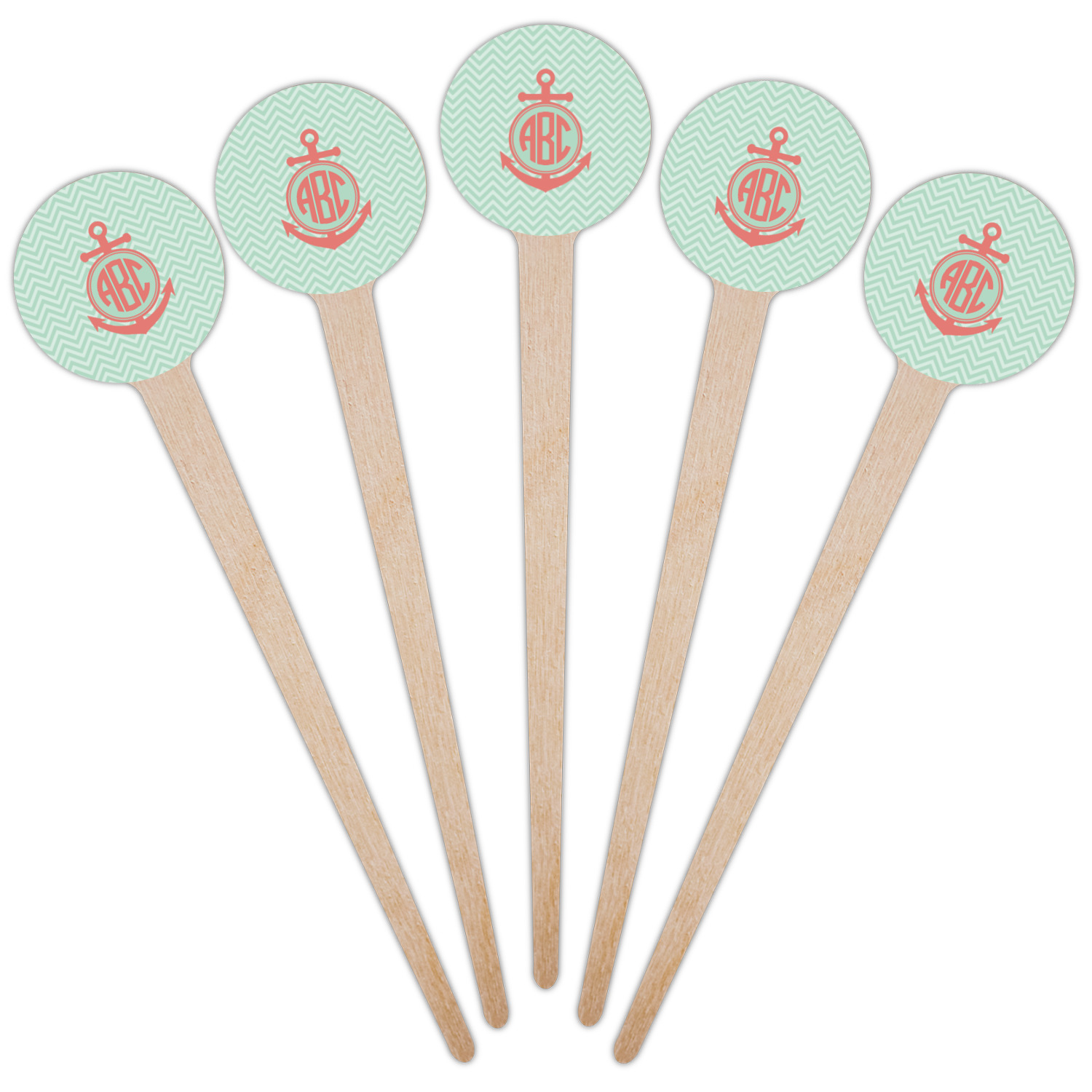 Coastal / Beach Style Designs for 4" Round Wooden Food Picks - Single-Sided