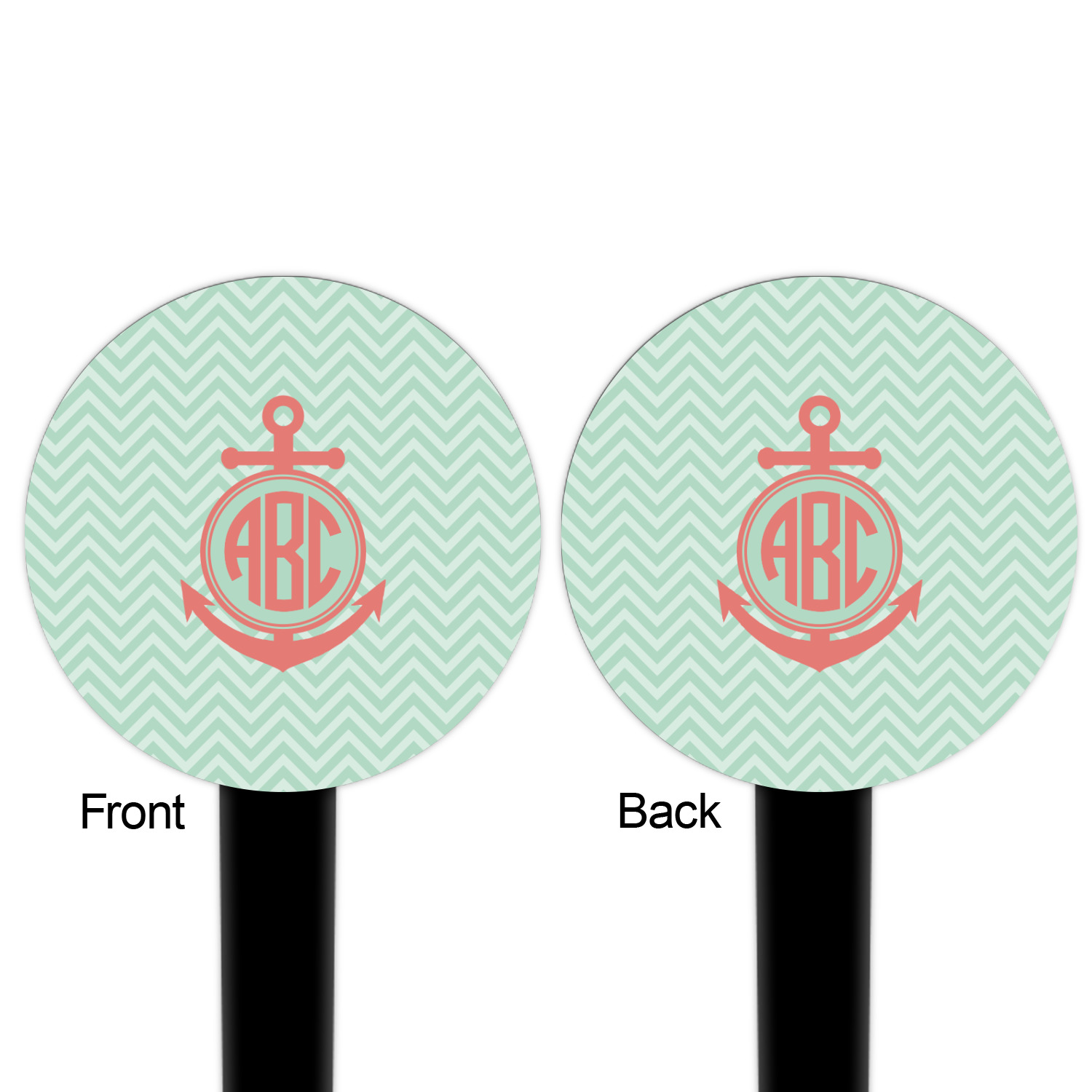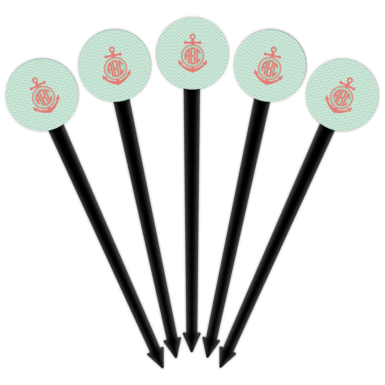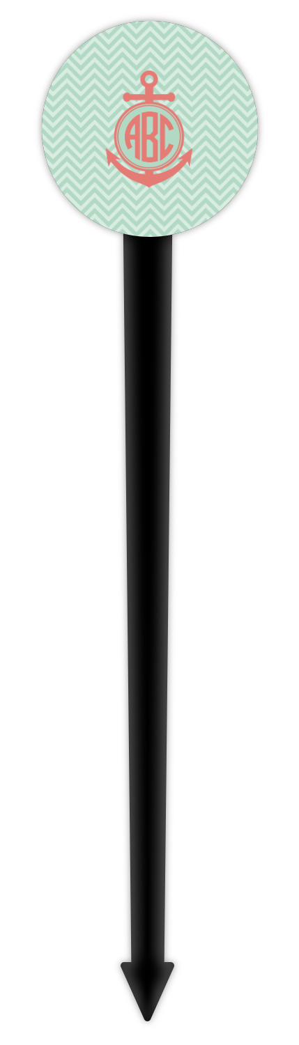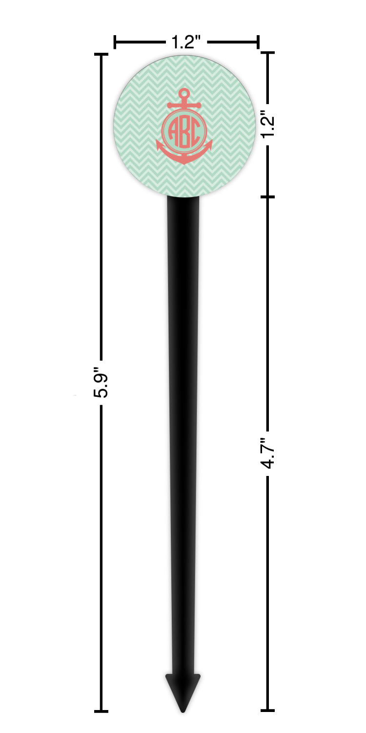 Coastal / Beach Style Designs for 6" Round Plastic Food Picks - Black - Double-Sided