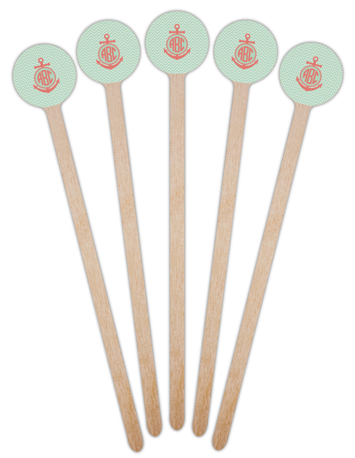 Coastal / Beach Style Designs for 7.5" Round Wooden Stir Sticks - Single-Sided
