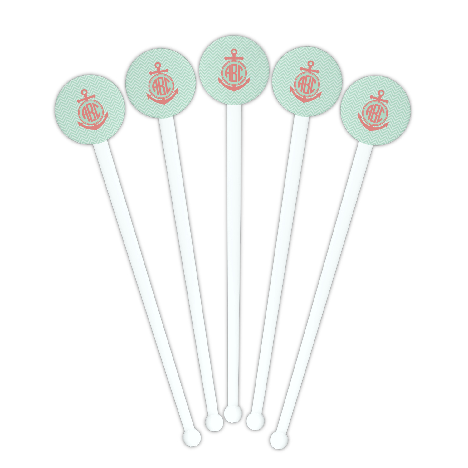 Coastal / Beach Style Designs for 7" Round Plastic Stir Sticks - White - Single-Sided