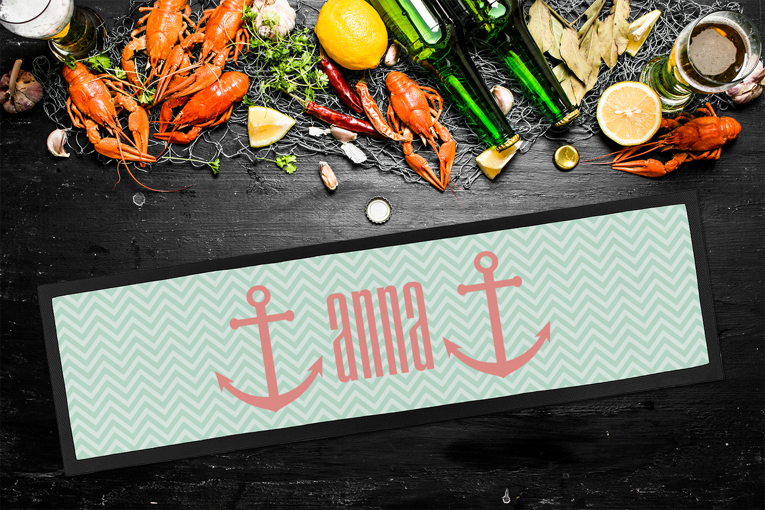 Keep up the trends with this Chevron & Anchor Design. This design features a coral anchor on a background of two tone mint chevron.