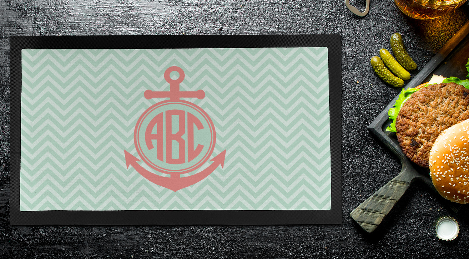 Keep up the trends with this Chevron & Anchor Design. This design features a coral anchor on a background of two tone mint chevron.