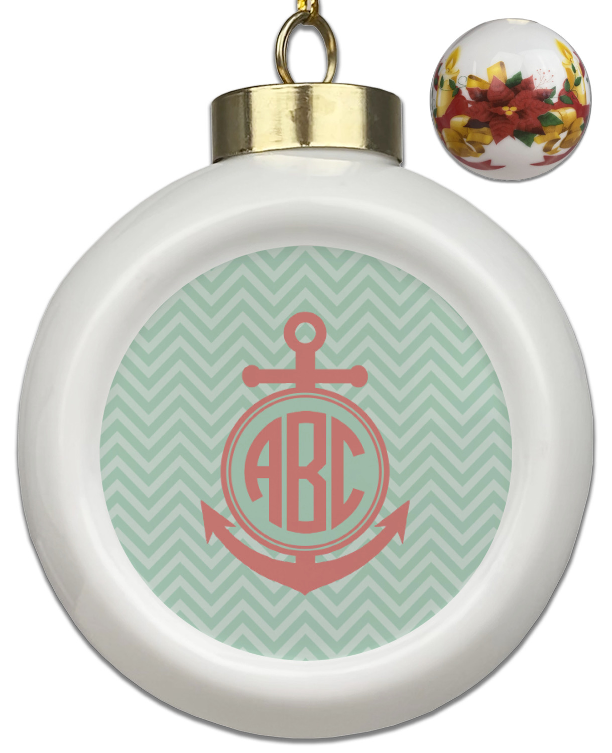 Coastal / Beach Style Designs for Ceramic Ball Ornaments - Poinsettia Garland