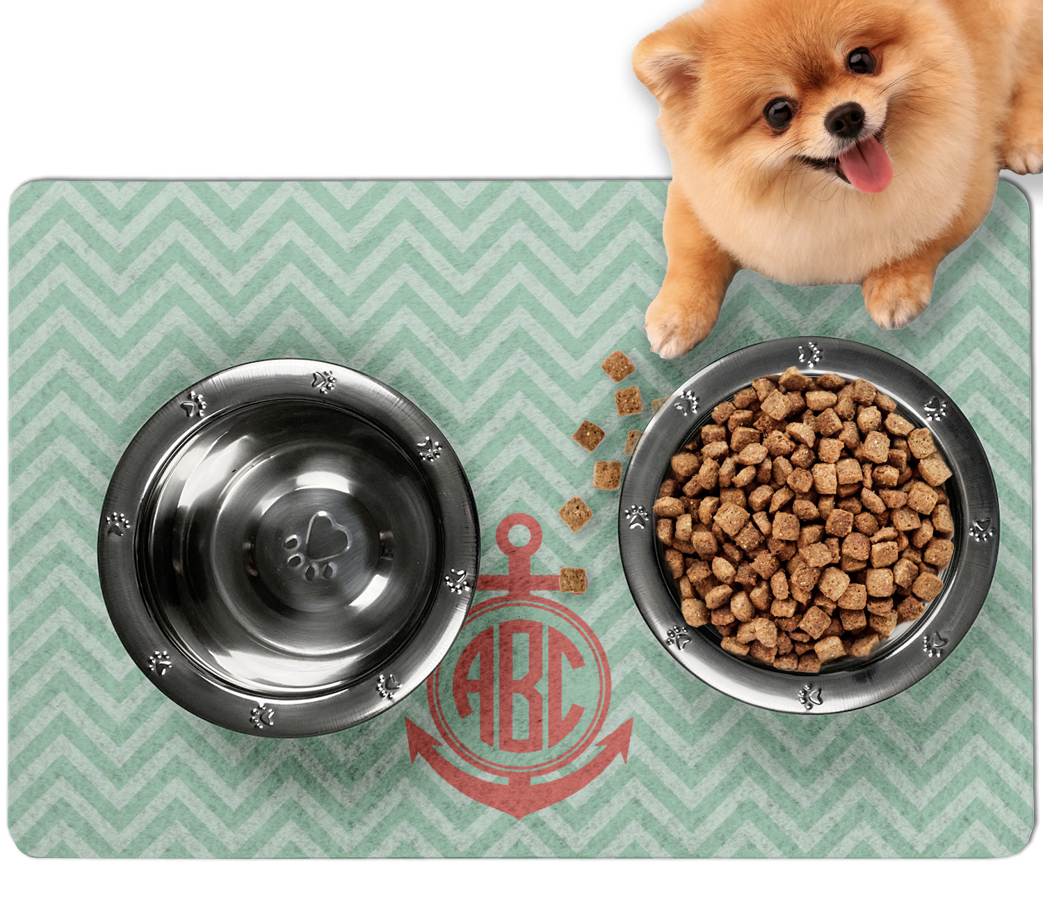 Frustrated with the mess your pets make during mealtime? Personalize a multi-functional dog food mat that prevents spills from reaching your floors, while also incorporating some cute decor to your dog's eating area!
