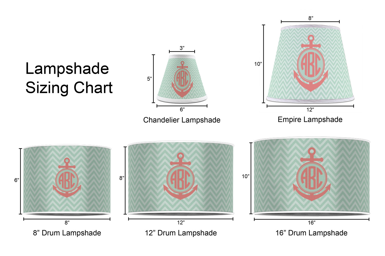Our customized lamp shades also come in 3 different sizes: 8", 12" and 16", measuring at 8" in diameter by 6" tall, 12" in diameter by 8" tall, and 16" in diameter by 10" tall, respectively.