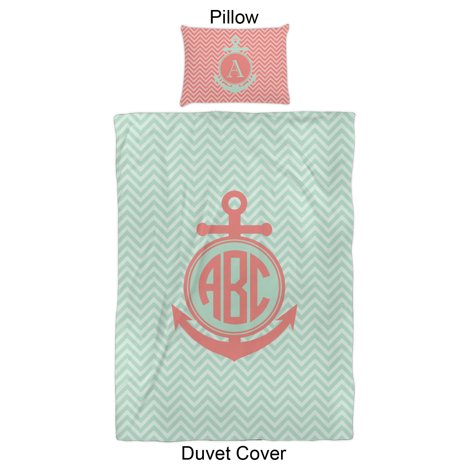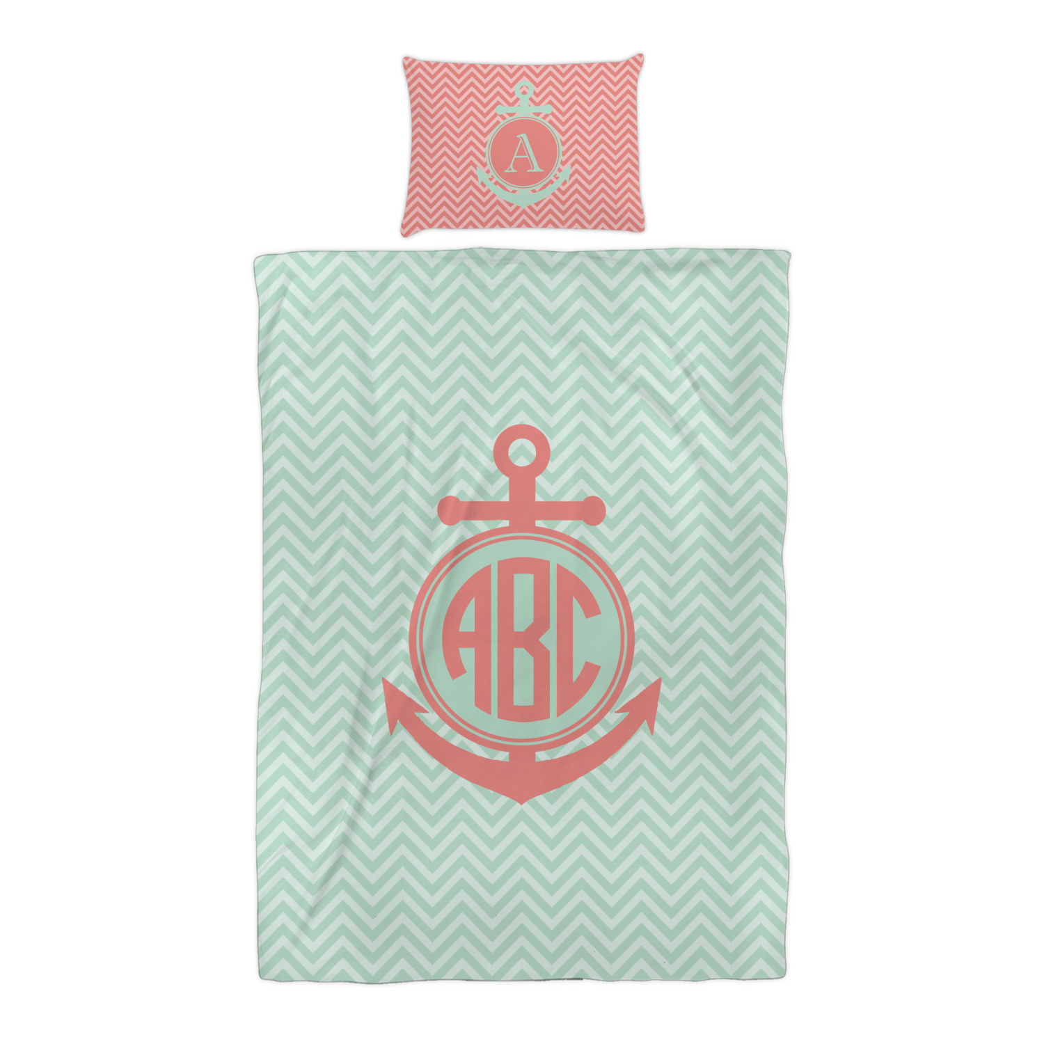 Keep up the trends with this Chevron & Anchor Design. This design features a coral anchor on a background of two tone mint chevron.