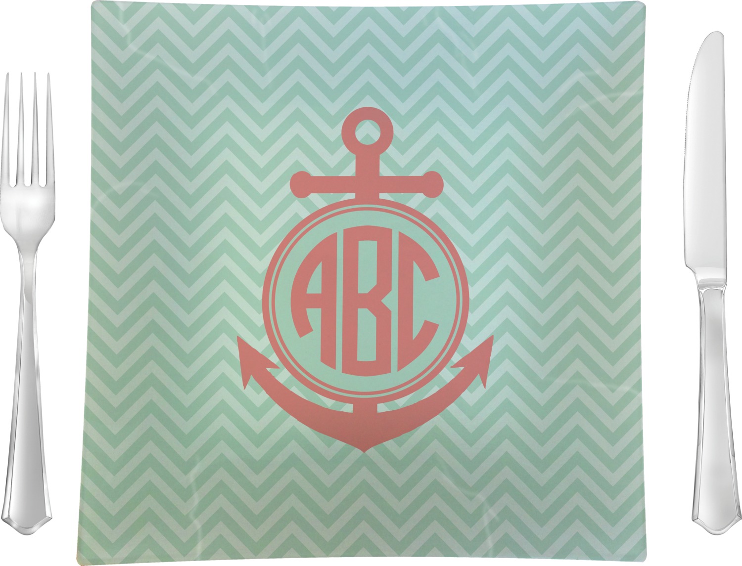 Keep up the trends with this Chevron & Anchor Design. This design features a coral anchor on a background of two tone mint chevron.
