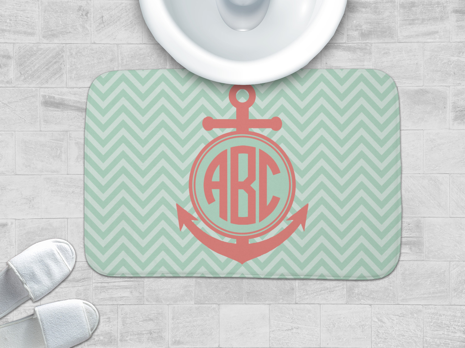 Keep up the trends with this Chevron & Anchor Design. This design features a coral anchor on a background of two tone mint chevron.