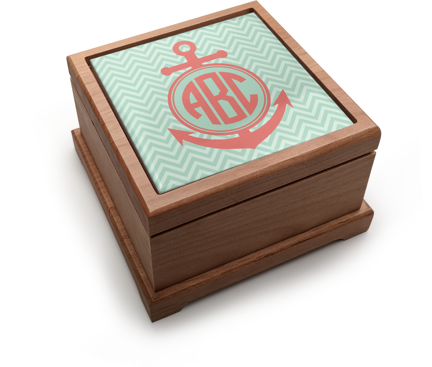 Keep up the trends with this Chevron & Anchor Design. This design features a coral anchor on a background of two tone mint chevron.
