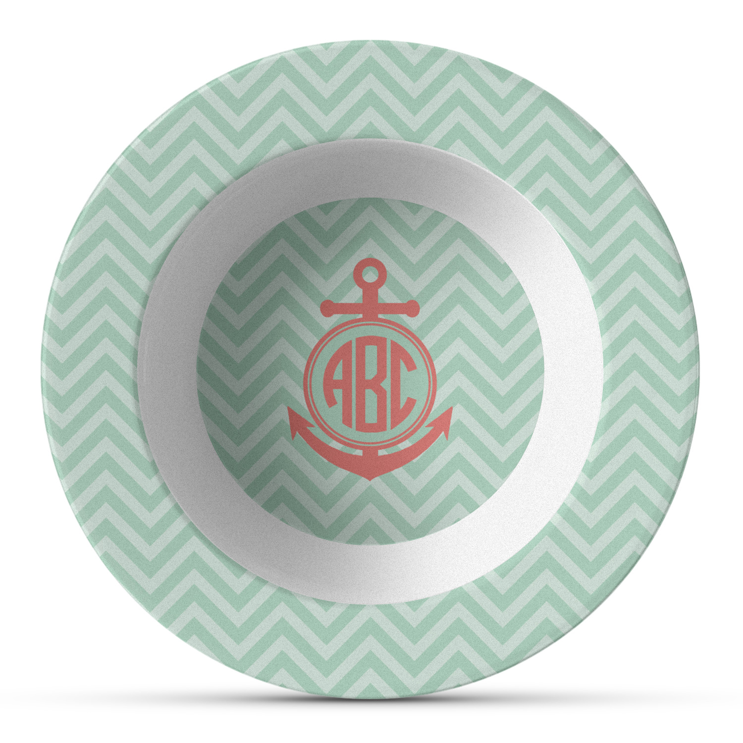 Keep up the trends with this Chevron & Anchor Design. This design features a coral anchor on a background of two tone mint chevron.