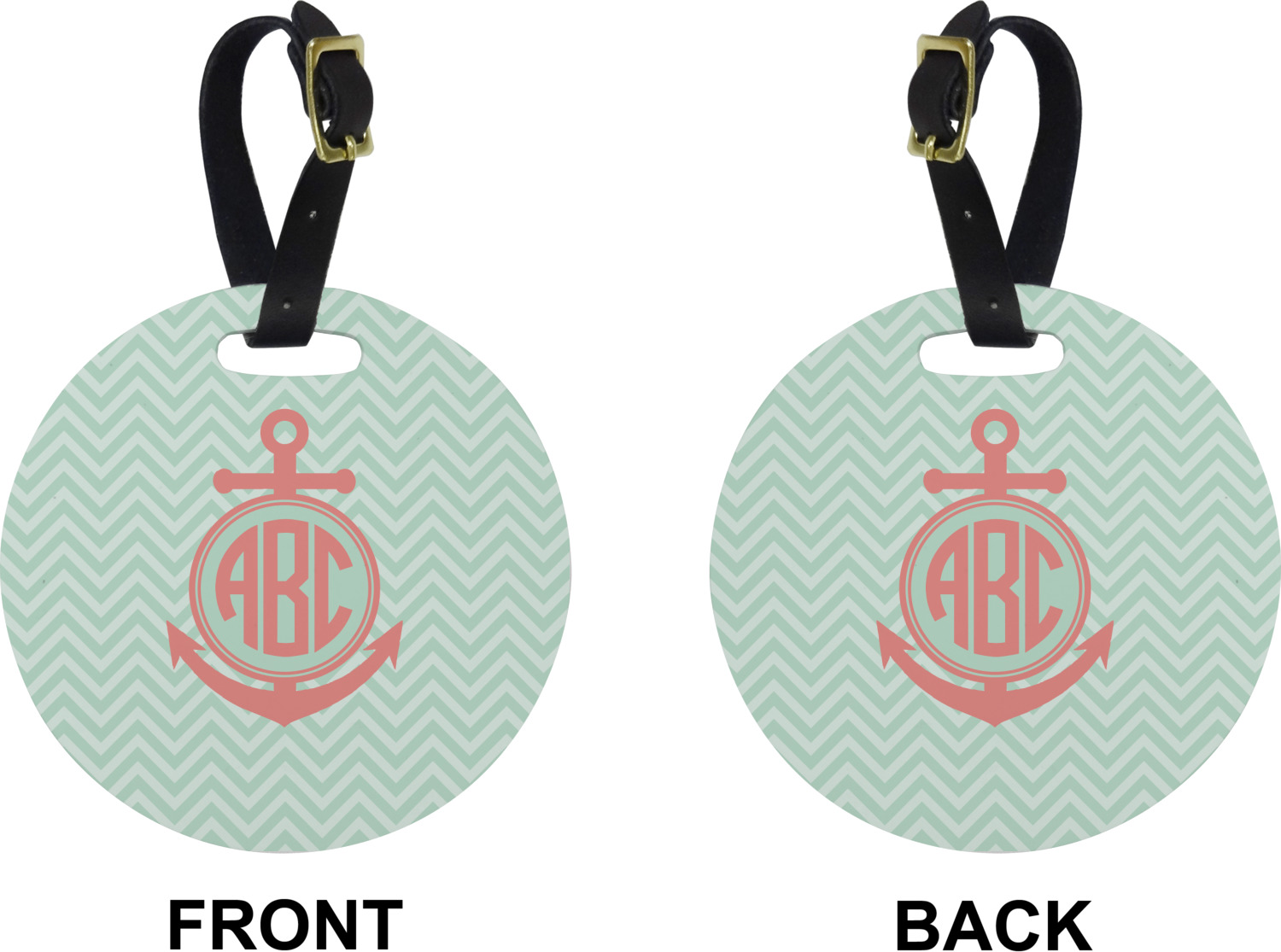 These personalized bag tags are sold in a variety of shapes, so that you may find the product that meets your vision exactly. We sell a round luggage tag, which measures at approximately 4" x 4". Our square luggage tag is about 3.5" x 3.5", while our rectangular version is 2.75" x 4 ".
