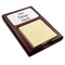 Crafted from a fine mahogany, this post it note holder is in the shade of a dark, cherry color. The dispenser itself is about 4.25 by 6.25 by 0.75 inches. You can place your 3 by 3 inch sticky notes in the indentation below the nameplate. We print your customization onto the nameplate that rests above the velvety indentation.