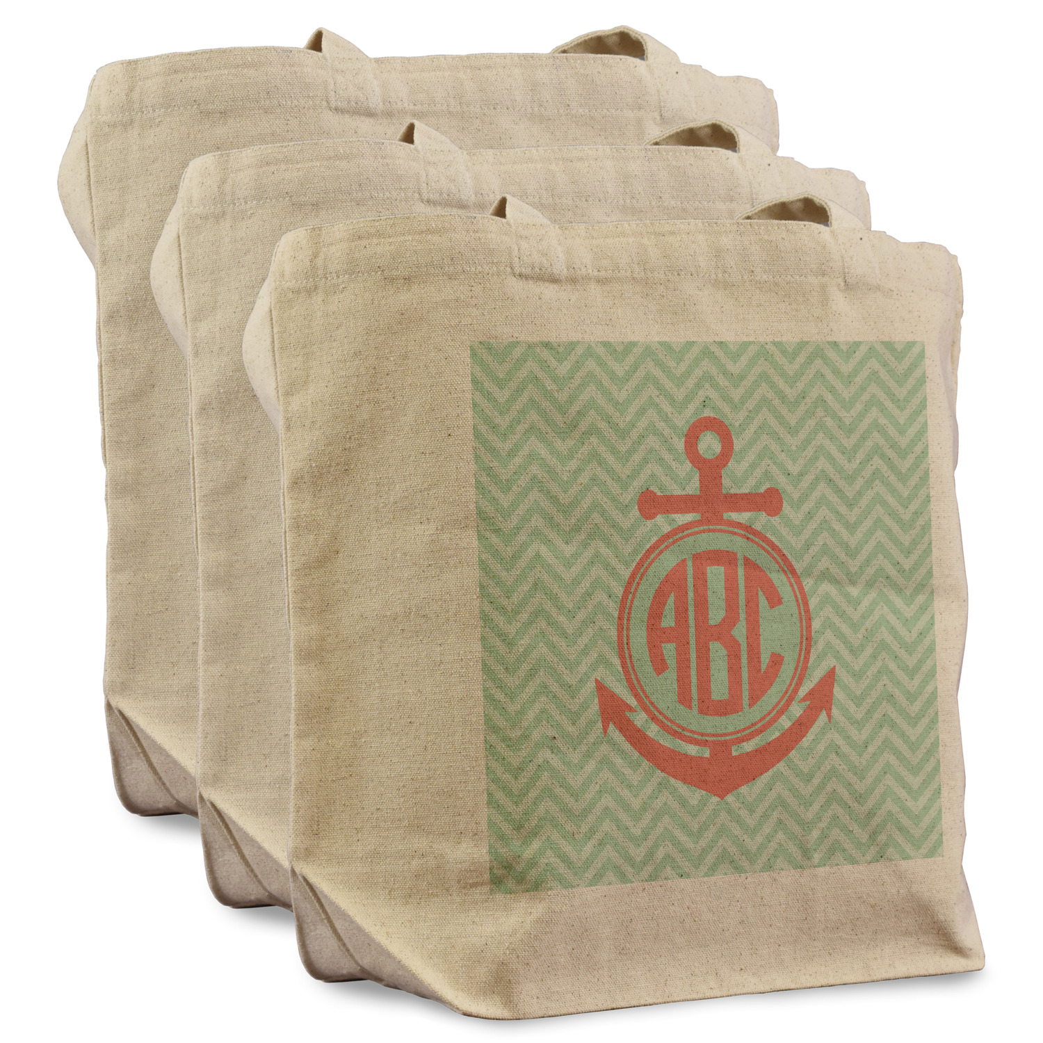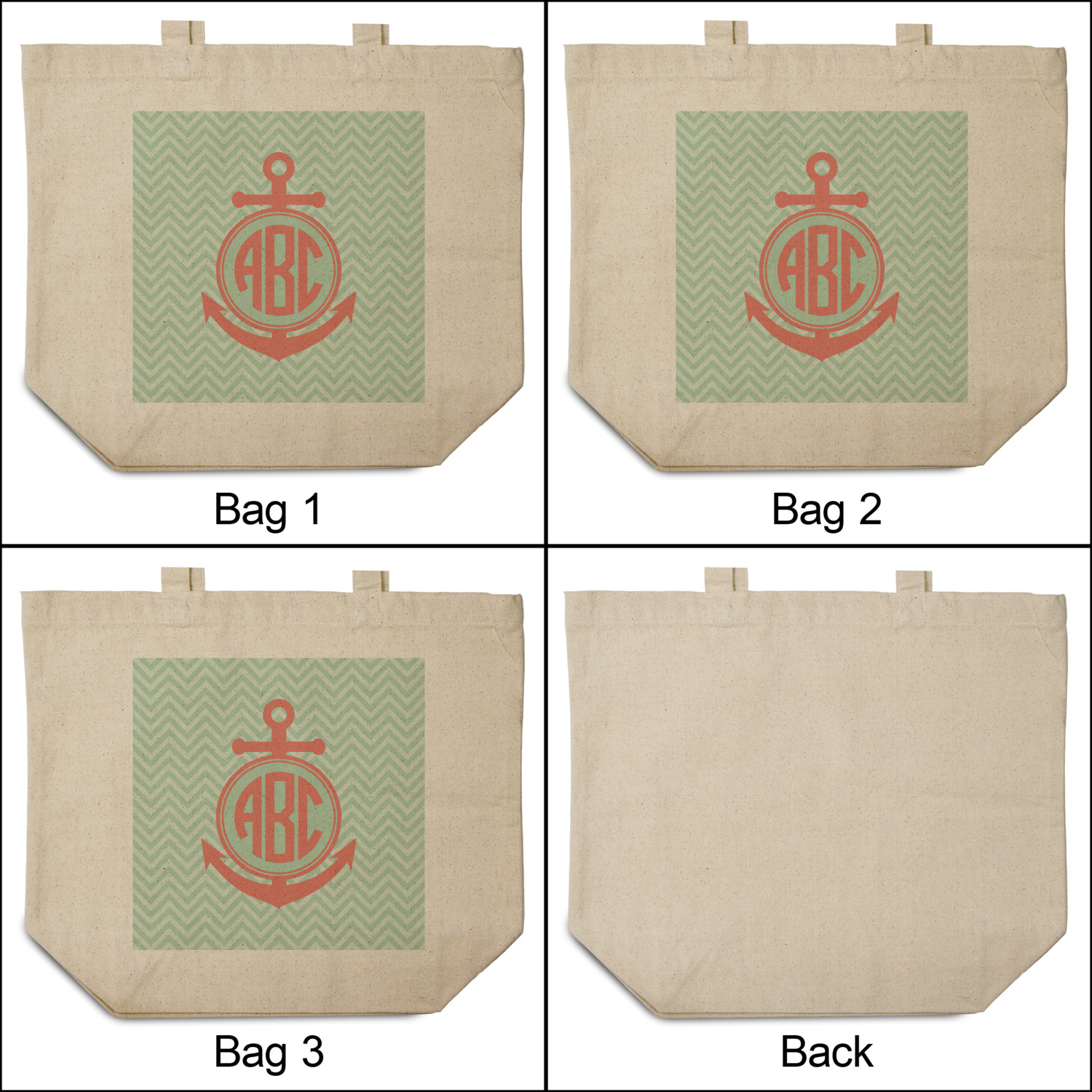 Coastal / Beach Style Designs for Reusable Cotton Grocery Bags - Set of 3