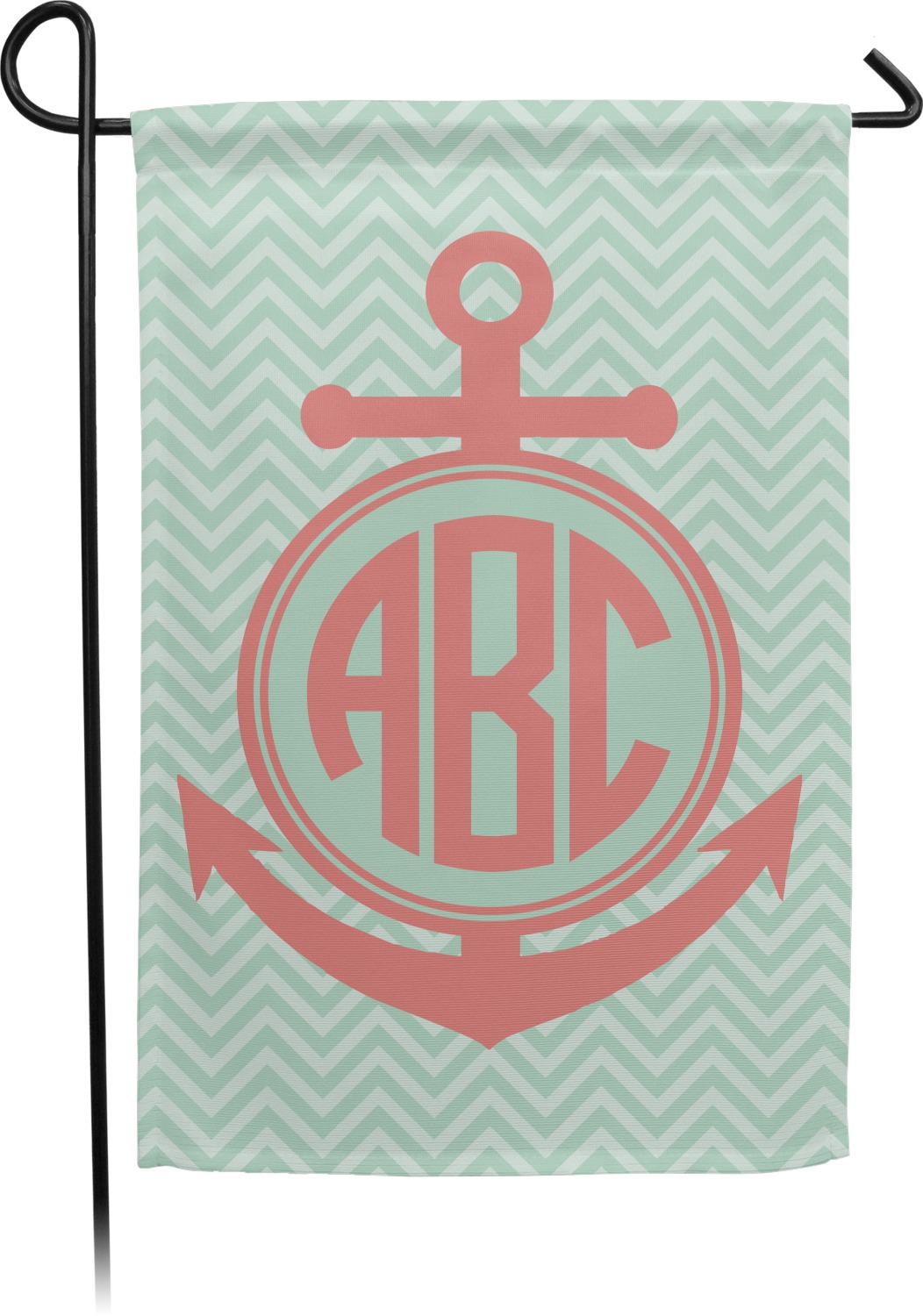 Keep up the trends with this Chevron & Anchor Design. This design features a coral anchor on a background of two tone mint chevron.