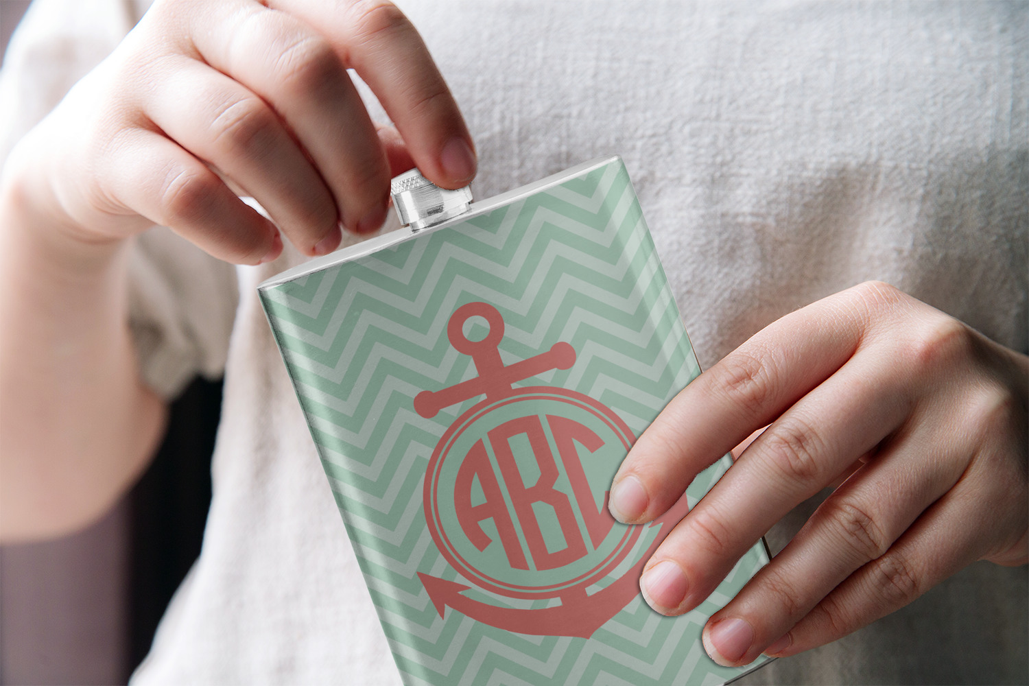 Keep up the trends with this Chevron & Anchor Design. This design features a coral anchor on a background of two tone mint chevron.