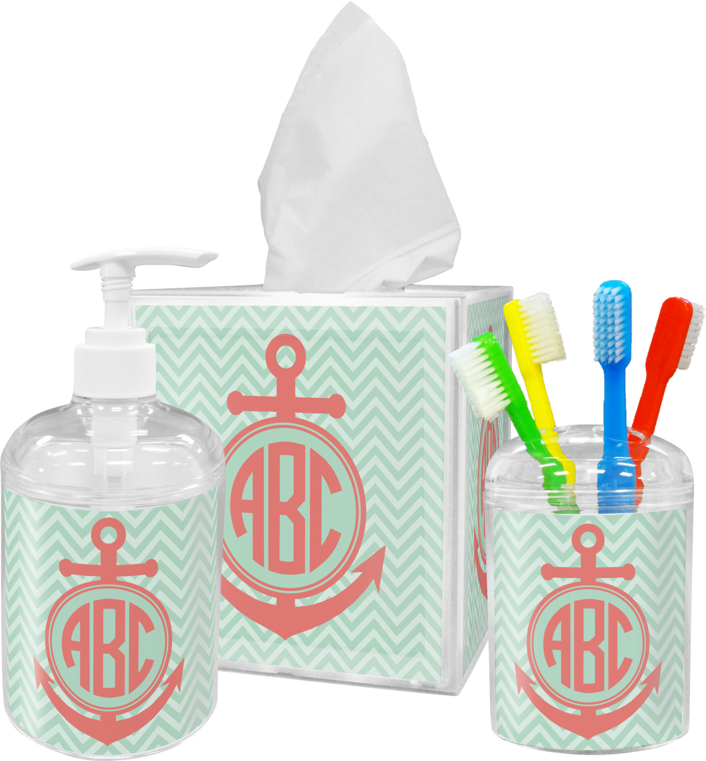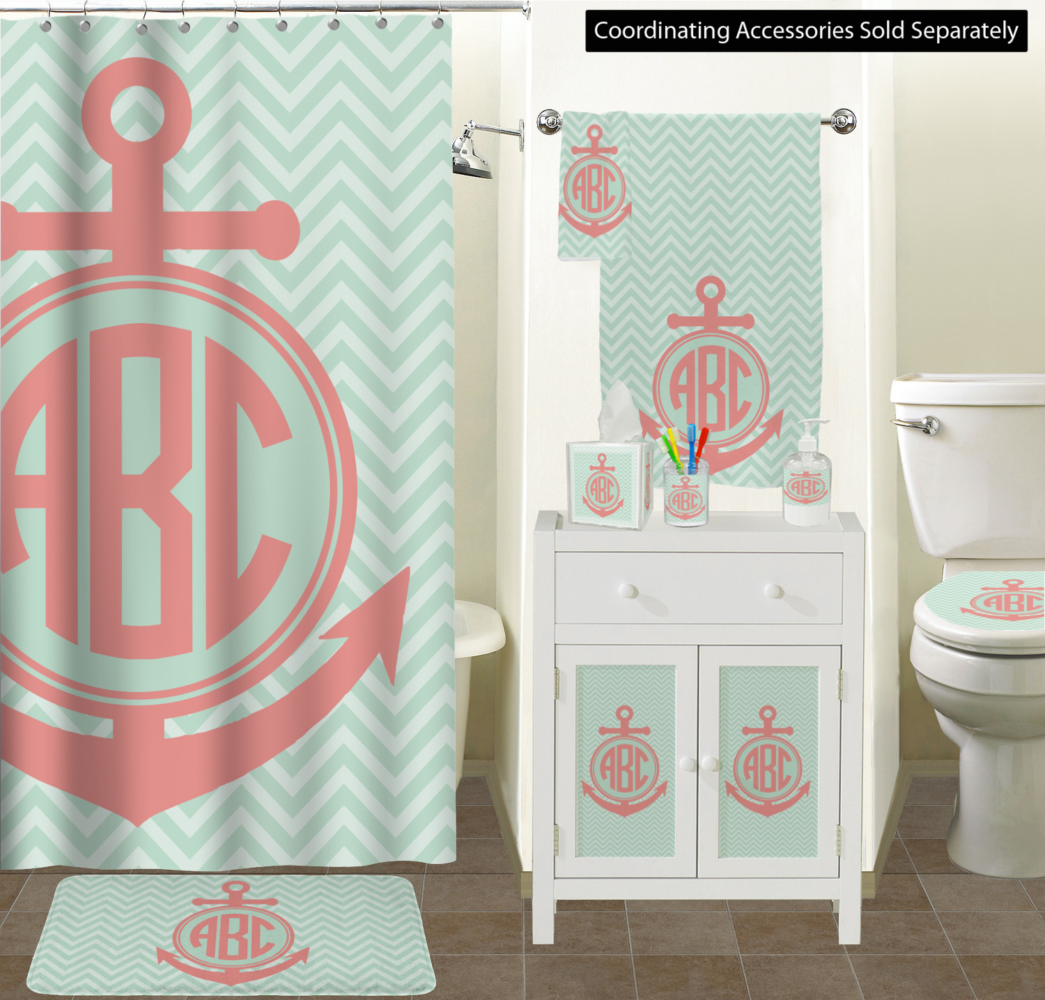 Keep up the trends with this Chevron & Anchor Design. This design features a coral anchor on a background of two tone mint chevron.