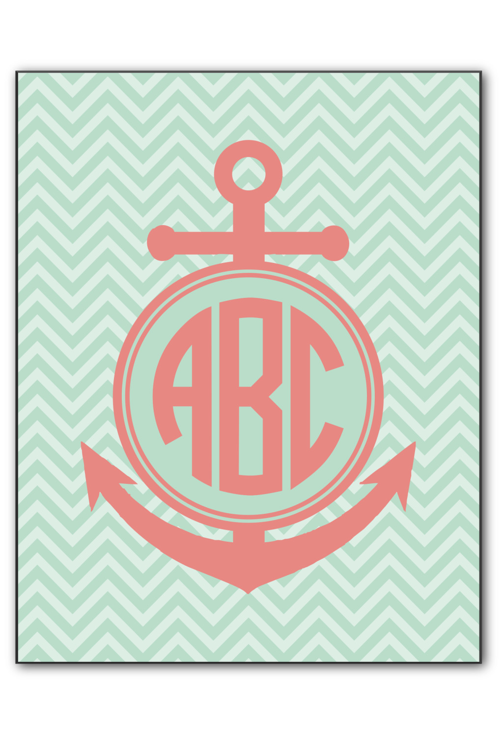 Keep up the trends with this Chevron & Anchor Design. This design features a coral anchor on a background of two tone mint chevron.