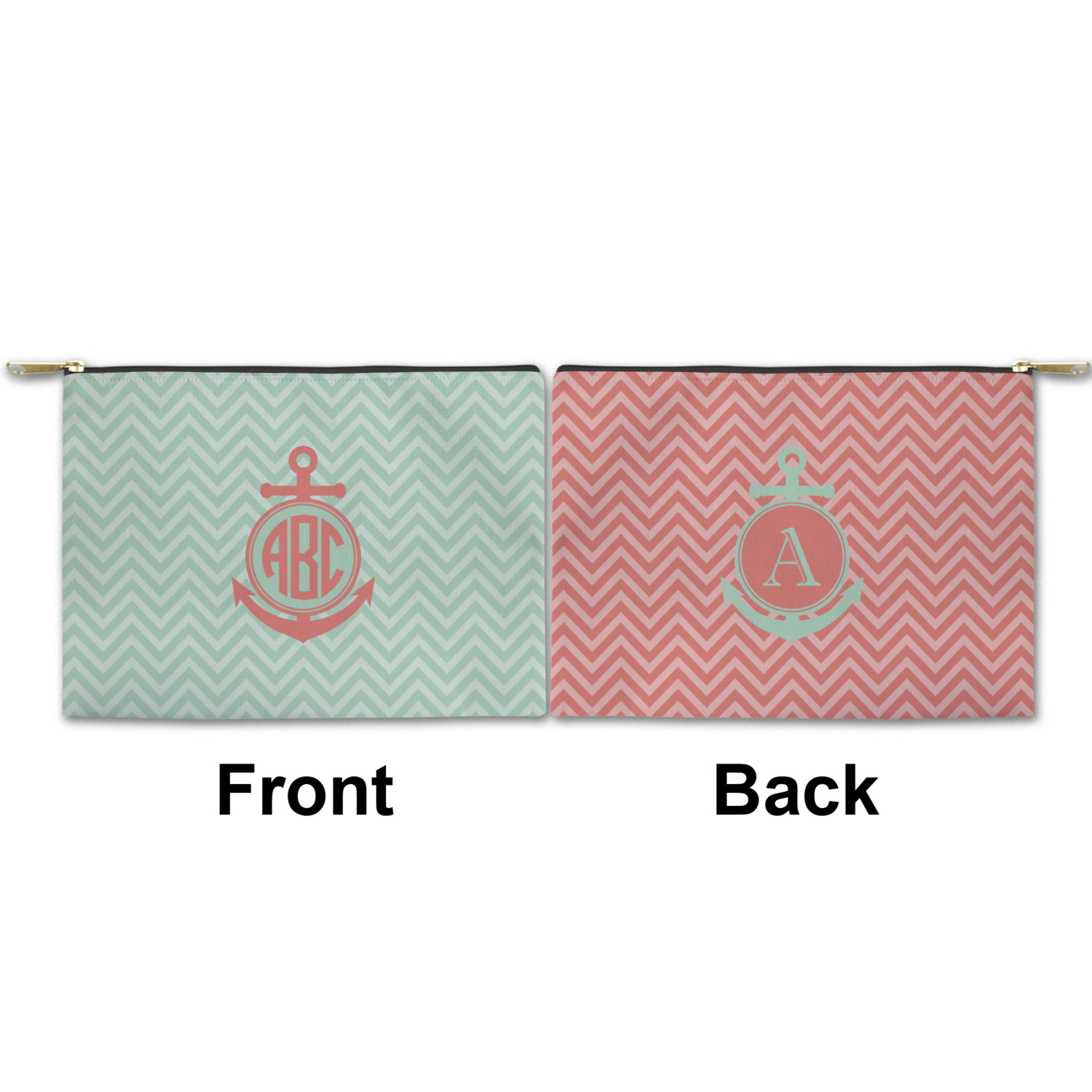 You can design both the front and the back of the pouch - same design, two complementary designs or two totally different designs - the choice is yours! We offer many different personalization styles i.e. name, name & initial, monograms - so the choice to personalize is also yours.