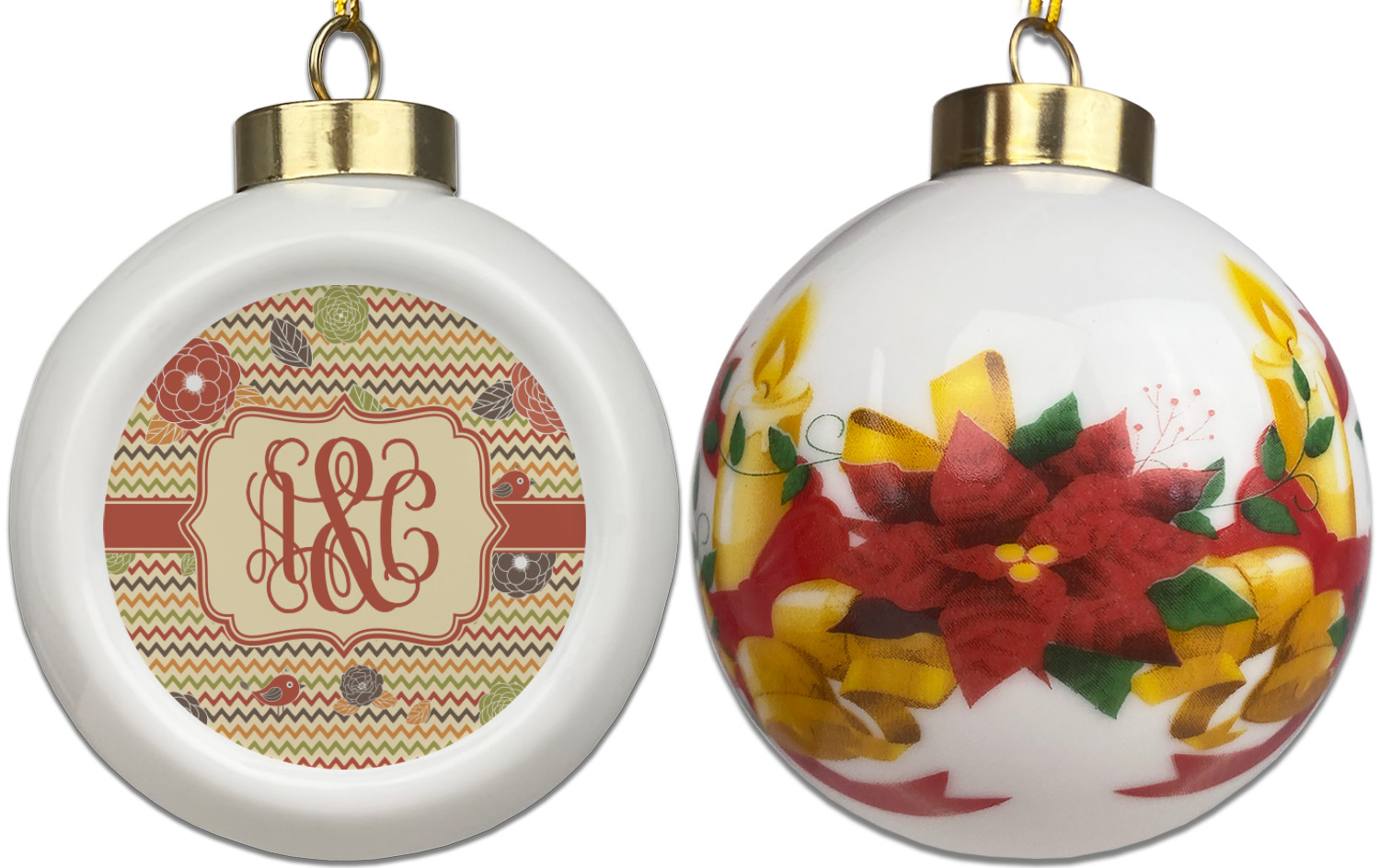 Our Christmas ornaments are a unique ceramic ball shape with a twist as it has a flat face to display your custom design! Select from one of our two design types - Christmas Tree or Poinsettia Garland - to adorn the curved back of your personal design. Each ornament measures 3H x 2.5W x 2D accompanied with a gold string accent for finishing touches to hang on your beautiful Christmas tree!