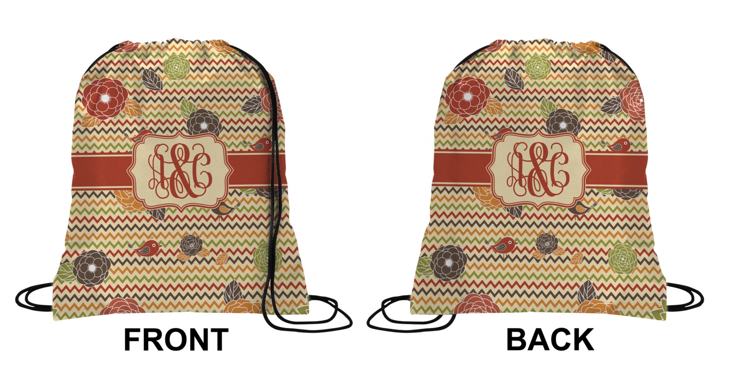 Our drawstring backpacks are custom made for you here in the USA. We offer a great selection of cinch bags and it is your choice to personalize them with the text of your choice, in the format of your choice i.e. monogram, name, initial, name & initial. We offer many different patterns and prints; and many of the patterns are available in 45 different colors.