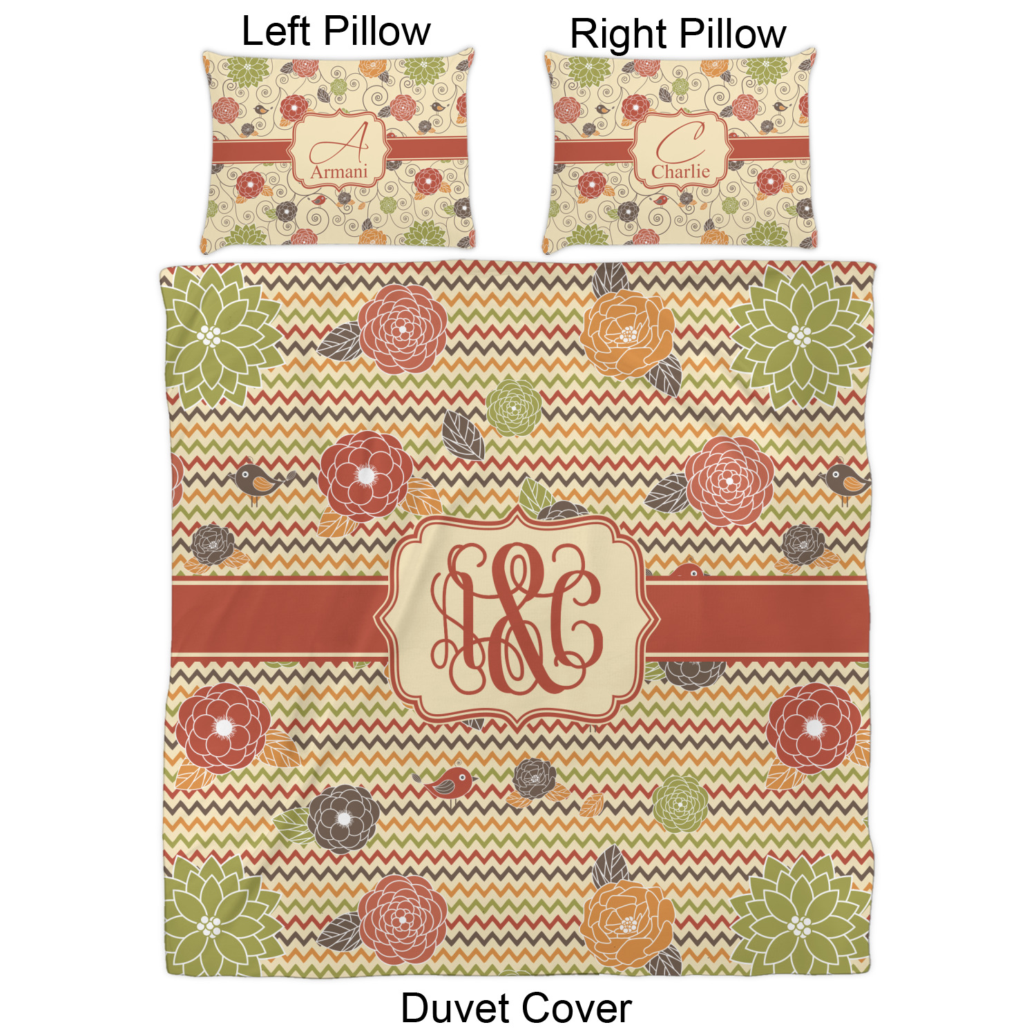 This a layered design with chevron and flowers in rich fall colors. The background has chevron, while the foreground has simple, yet elegant flowers and birds. We thinks it creates an absolutely stunning design.