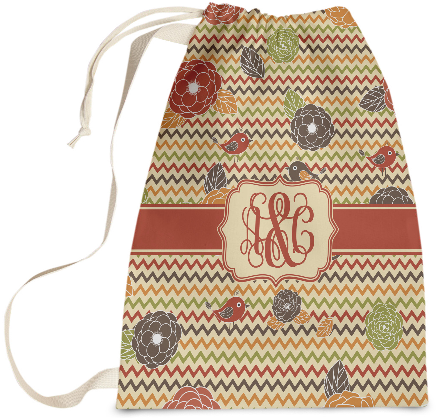 Carry your laundry in style with these customized laundry bags. Available in two sizes, featuring a natural colored woven strap and a cinch cord, these bags hold a lot of clothes or anything else you want to fit in them.
