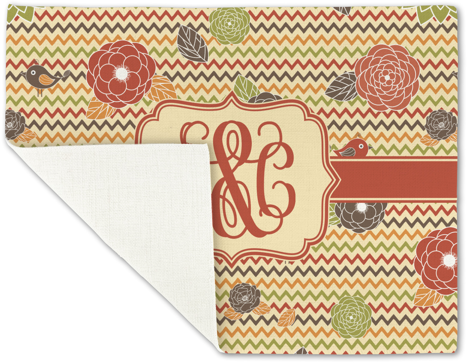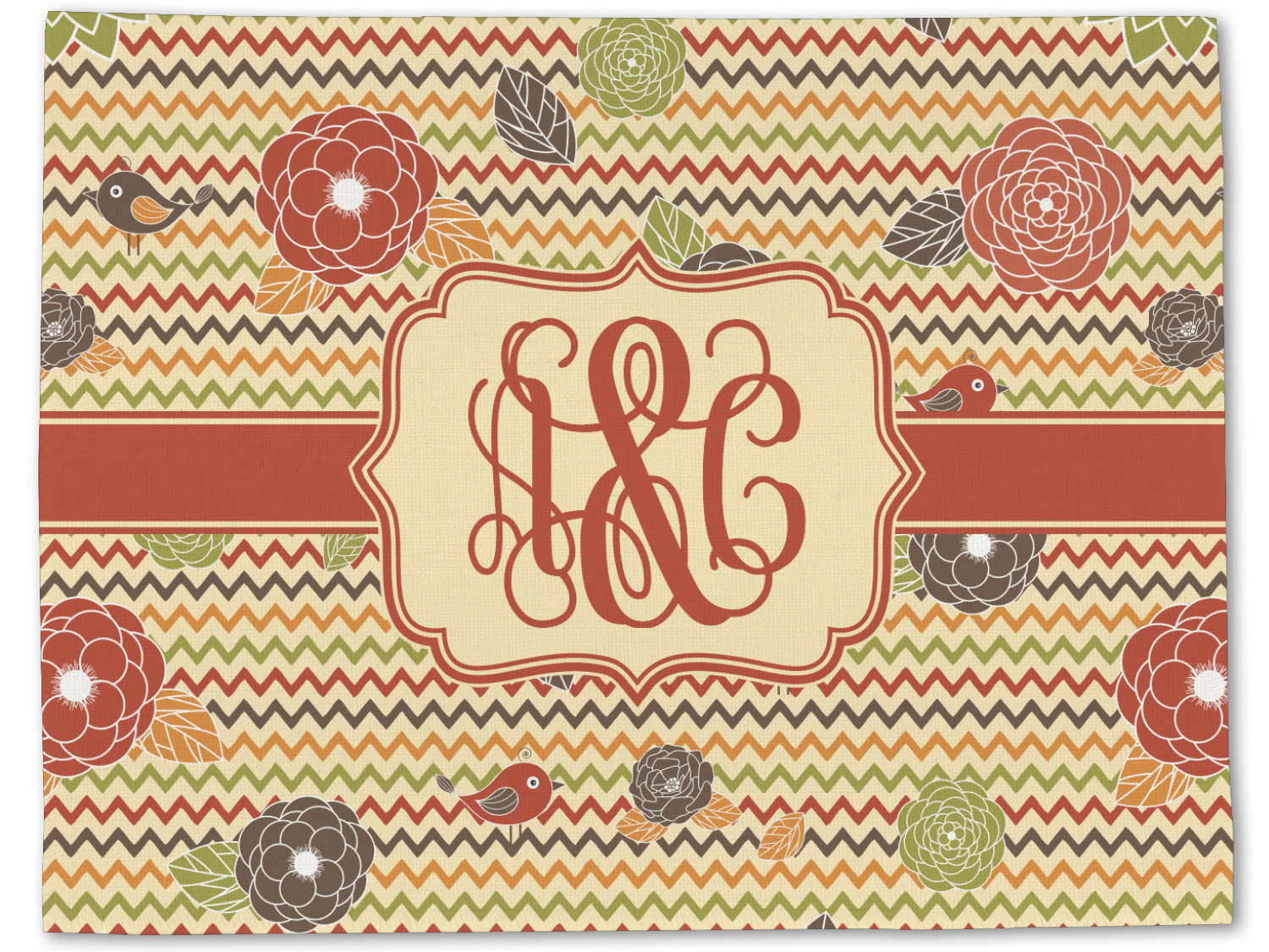 This a layered design with chevron and flowers in rich fall colors. The background has chevron, while the foreground has simple, yet elegant flowers and birds. We thinks it creates an absolutely stunning design.