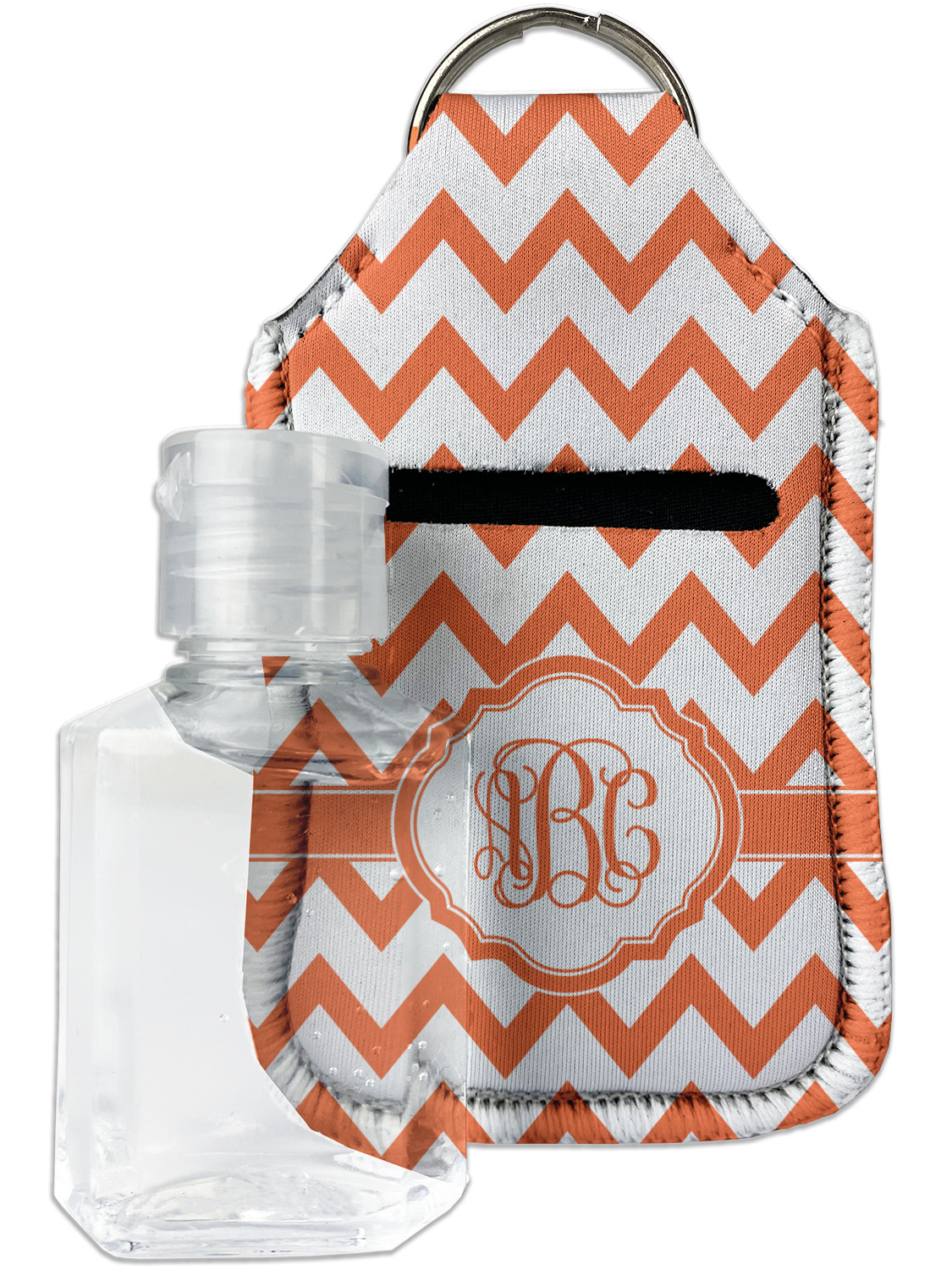 Each hand sanitizer holder comes with its own empty travel-sized, refillable hand sanitizer sure to fit snug in your customized sanitizer case! Our hand sanitizer cases are a durable, yet soft neoprene material sure to last any daily activities or travel agenda. Customize and personalize a hand sanitizer bottle holder with one of our two sizes - small (4.25" x 2.25") or large (5.5" x 2.5"). Each travel sanitizer holder comes with a keyring for attachment on bags, keys, or more!