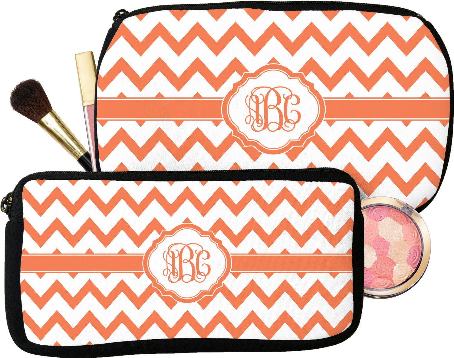 Every girl and woman carries makeup and cosmetics in her purse. Why not carry your makeup in these beautiful custom made and personalized makeup bags. These cosmetic bags also make a great bridesmaid gift.