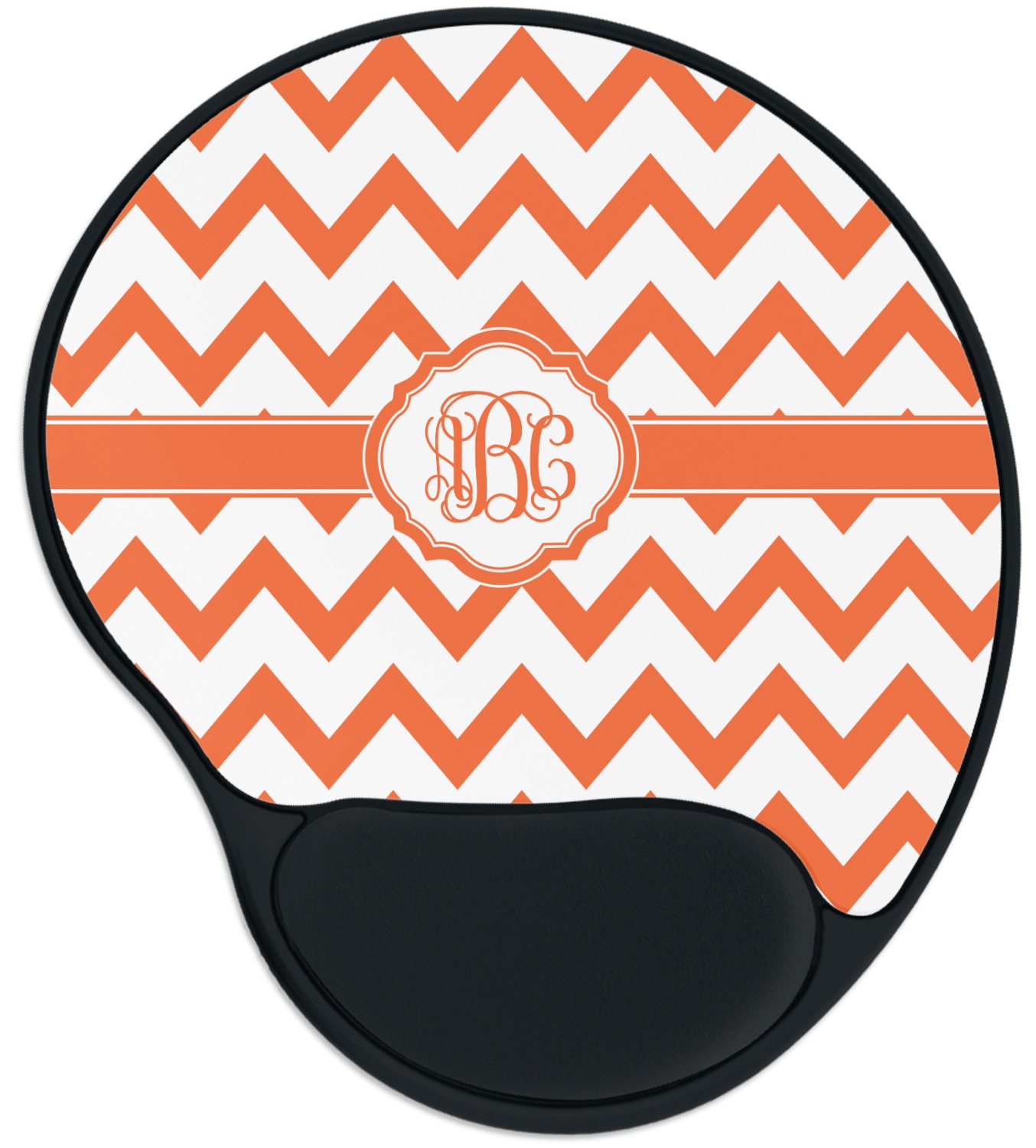 The top of these personalized mouse pads are made from a polyester, while the underside is plastic. The back of these mouse mats include rubber feet to prevent any slippage while in use. A padded wrist support, made from plush memory foam, occupies the bottom section of these computer mouse pads. Your customized design is printed onto the face of this mat, with the remaining sides and support piece colored in black. The mat itself is rounded and measures at 10.25" x 9.13".