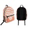 This backpack is the classic style with a zipper pocket on the front and a large zipper opening on top. There is also a small handle on top for hanging or carrying. The backpack straps are adjustable, so they should fit on most people. They are approximately 17"H x 12.5"W x 5"D, which is plenty of room for books, writing utensils, a laptop, and more! On the outside is a mesh pocket that is perfect for a waterbottle.