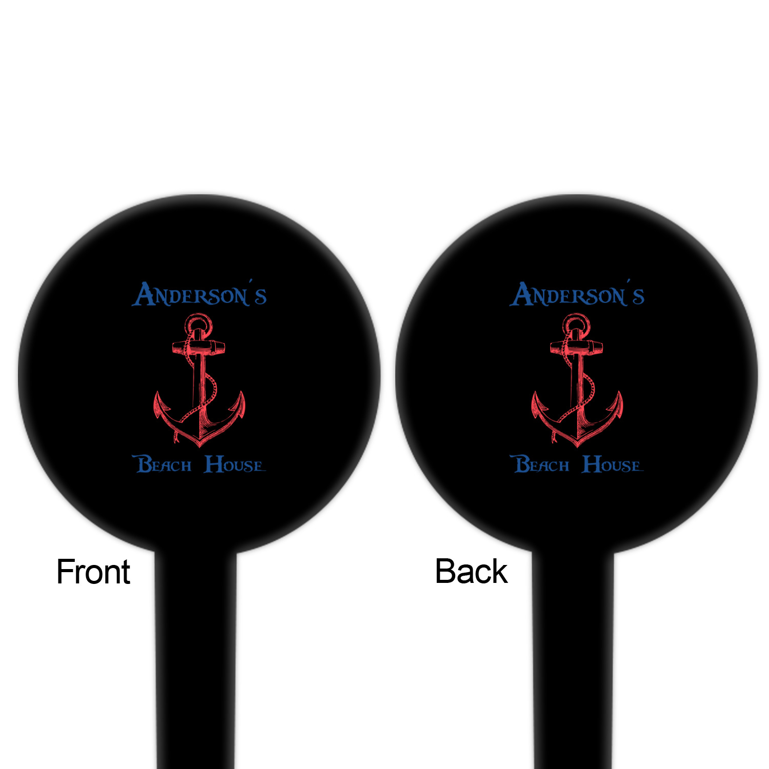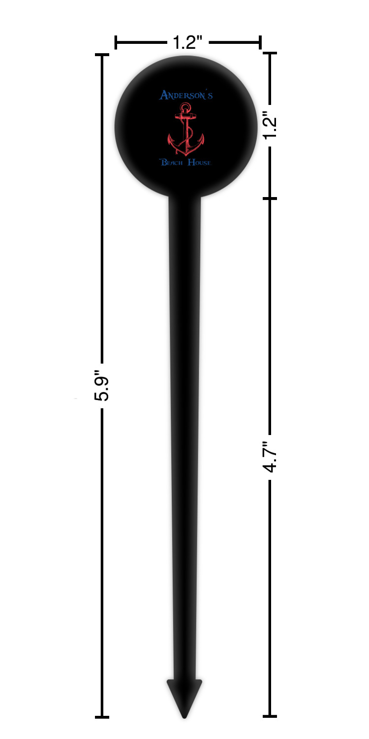 Coastal / Beach Style Designs for 6" Round Plastic Food Picks - Black - Double-Sided