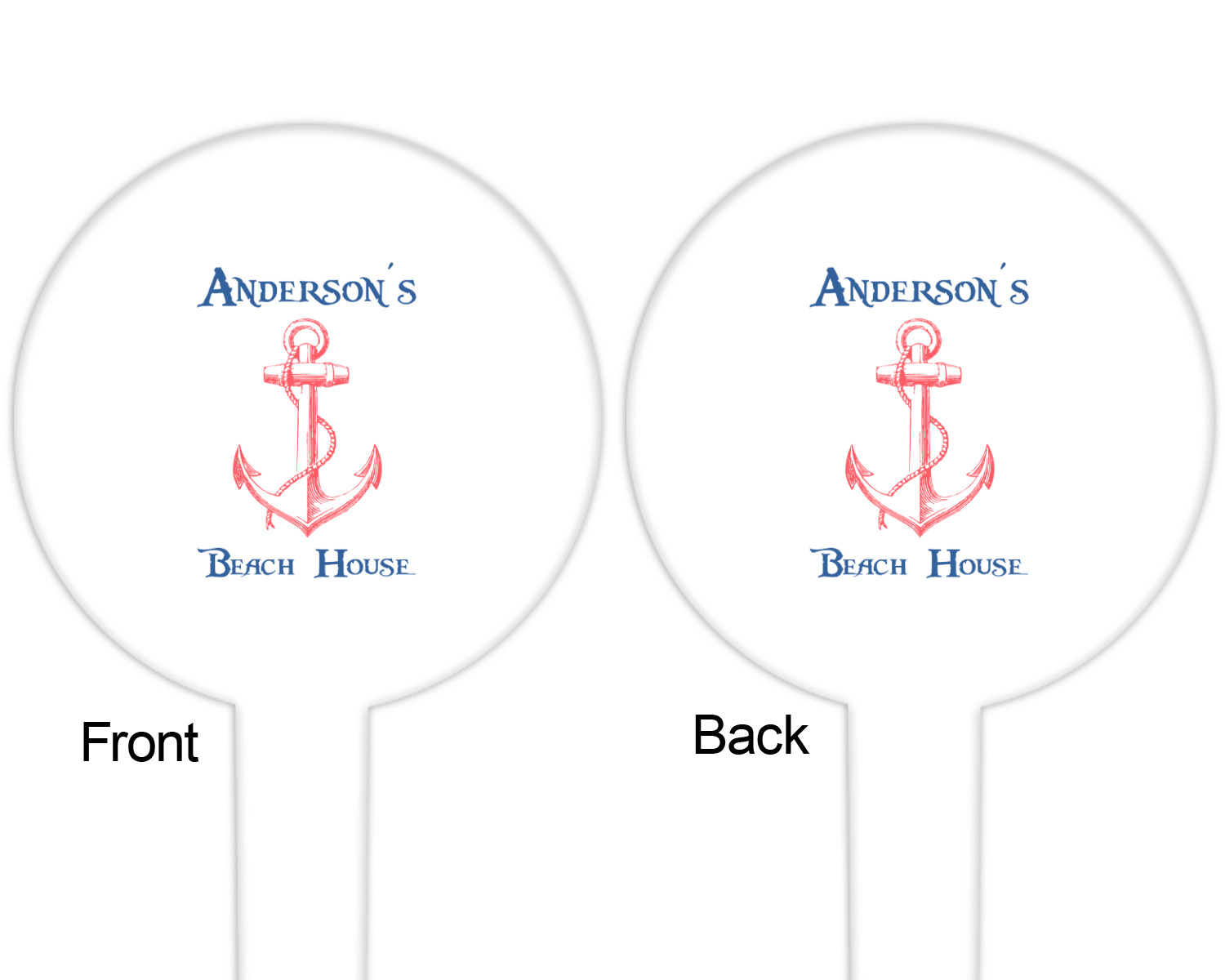 Coastal / Beach Style Designs for 6" Round Plastic Food Picks - White - Double-Sided