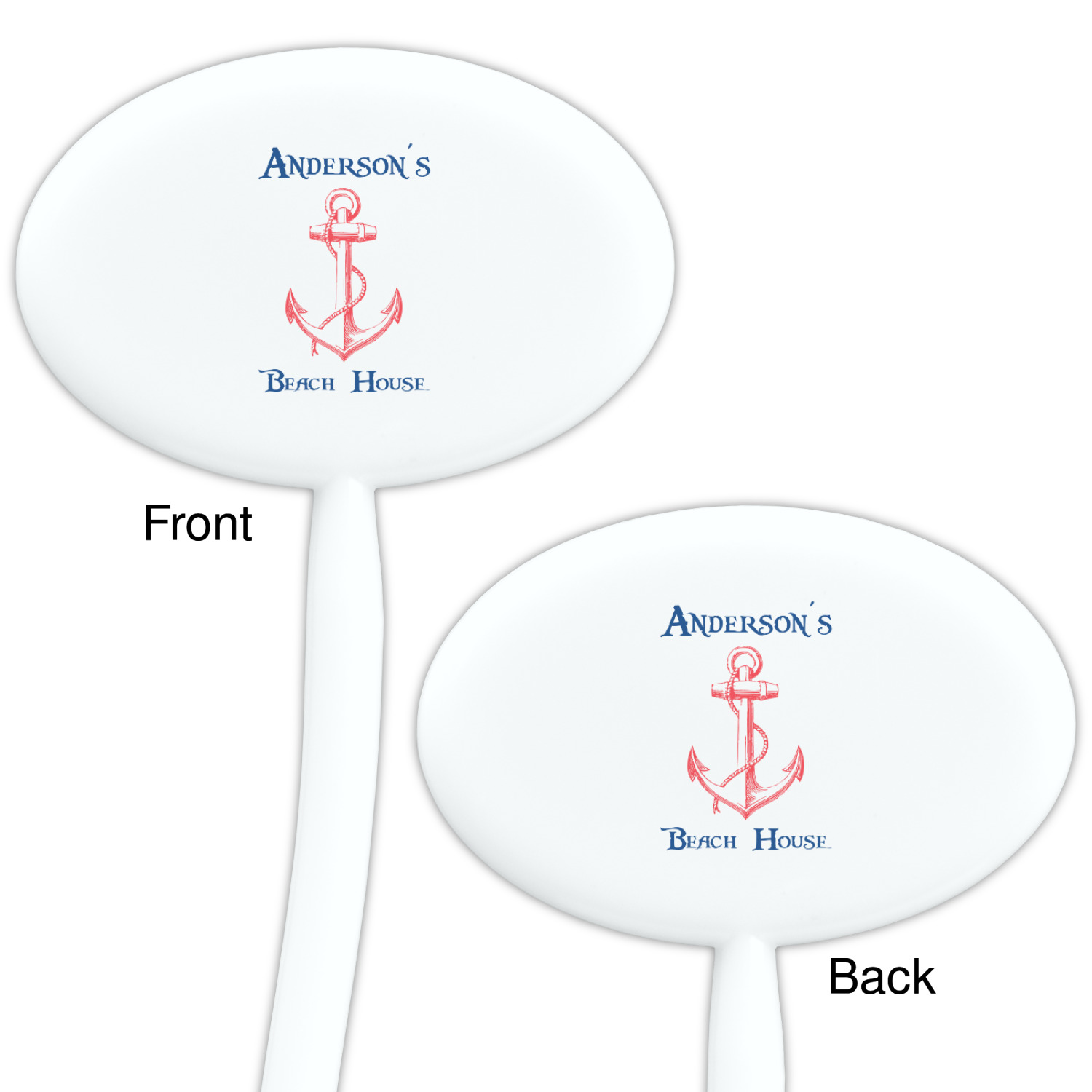 Coastal / Beach Style Designs for 7" Oval Plastic Stir Sticks - White - Double-Sided