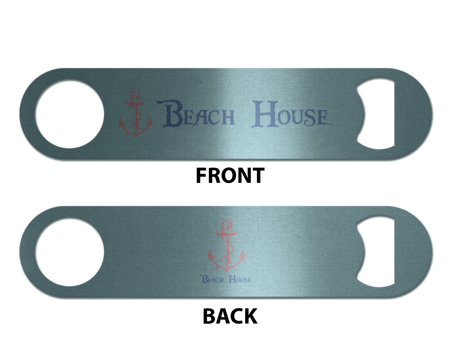 Made from stainless steel, these beer bottle openers are 7 by 1.625 inches, giving you plenty of leverage when trying to open a stubborn bottle. On one end of this personalized bottle opener, you'll find a circular hole for you to hang and display your opener. On the opposite end, you'll find the tool used for opening bottles. This opener in particular has the same structure and style as professional bartender bottle openers. Your customization is sublimated onto both the back and front, and both sides can be customized individually. Choose from one of our two base colors - white or silver.
