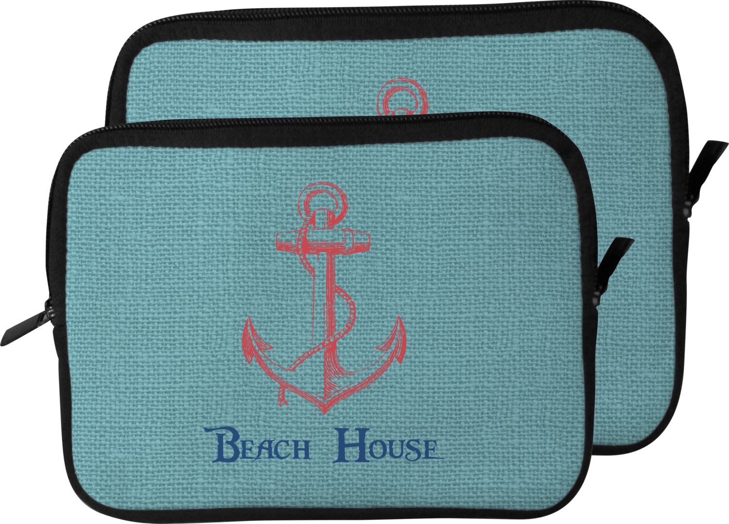 These laptop covers are built from a water-resistant, cushioned neoprene. We display your personalized design on the front of this computer sleeve, while the other sides are simply the black color of the neoprene fabric. A zipper lines the top half of this case, for direct access to your device. For added protection, the interior of this neoprene laptop sleeve is lined with a padded, minky-like material.