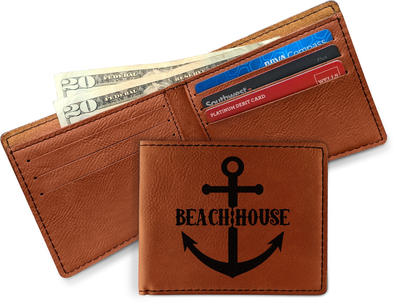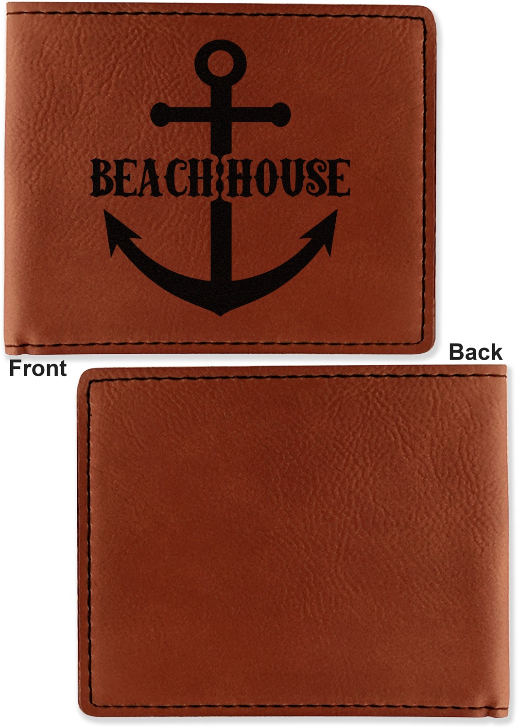 Your bifold wallet will be personalized by laser engraving, which will be a black color on the wallet. Choose a graphic, text, or monogram to personalize your wallet. There are thousands of choices in our design center.