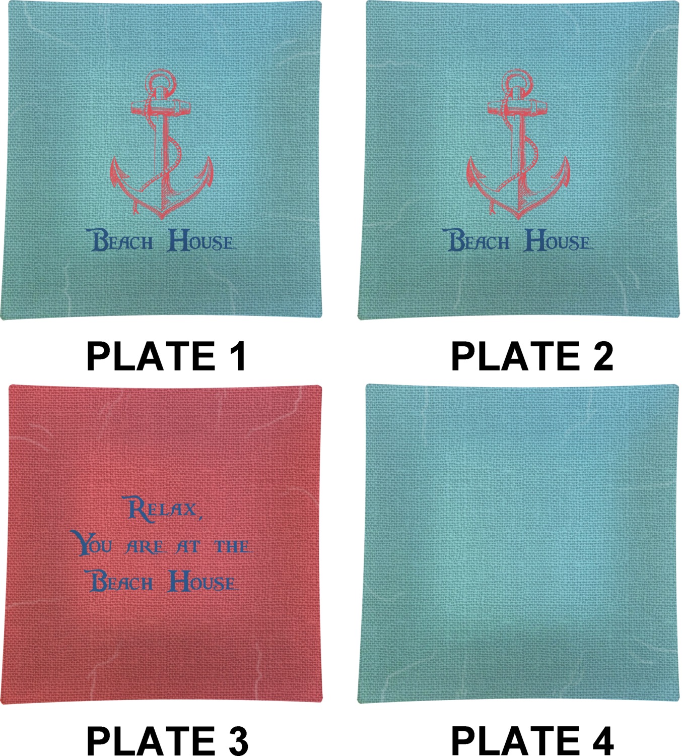 Coastal / Beach Style Designs for Glass Square Lunch / Dinner Plates 9.5" - Set of 4