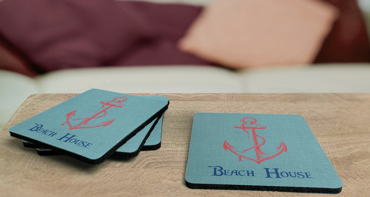Coastal / Beach Style Designs for Square Rubber Backed Coasters - Set of 4