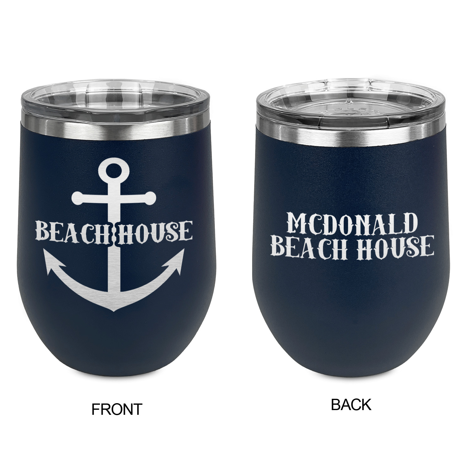 Coastal / Beach Style Designs for Stemless Stainless Steel Wine Tumblers - Navy - Double-Sided