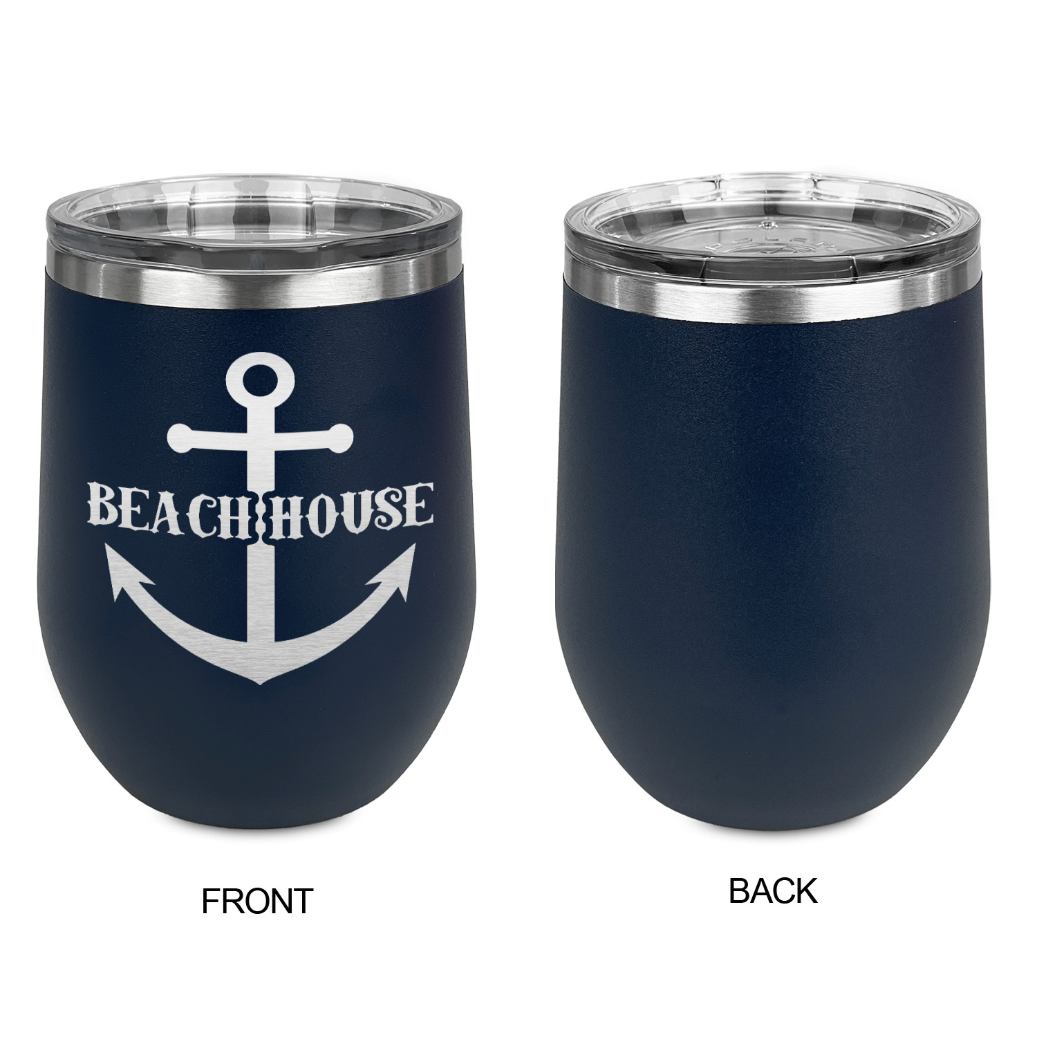Coastal / Beach Style Designs for Stemless Stainless Steel Wine Tumblers - Navy - Single-Sided