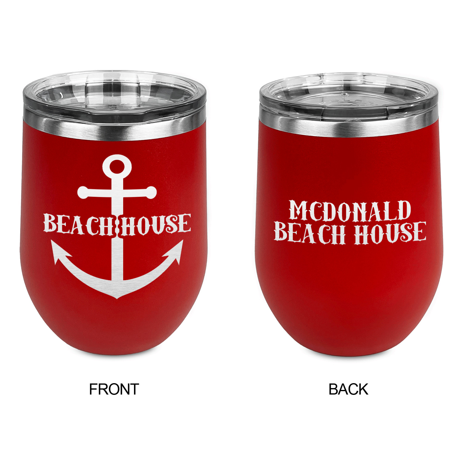 Coastal / Beach Style Designs for Stemless Stainless Steel Wine Tumblers - Red - Double-Sided