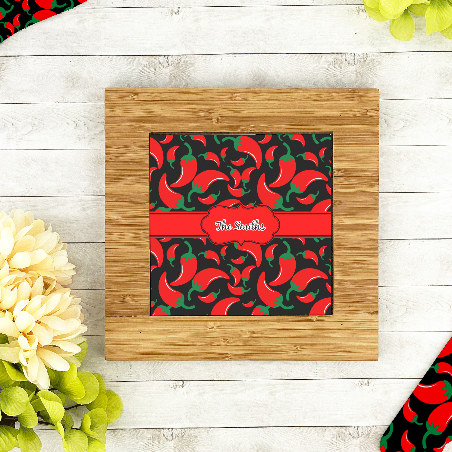 The center is highlighted by a 6in ceramic tile that is printed with the design of your choice. The tile sits slightly higher than the bamboo to ensure the majority of the heat stays on the tile not on the bamboo.
