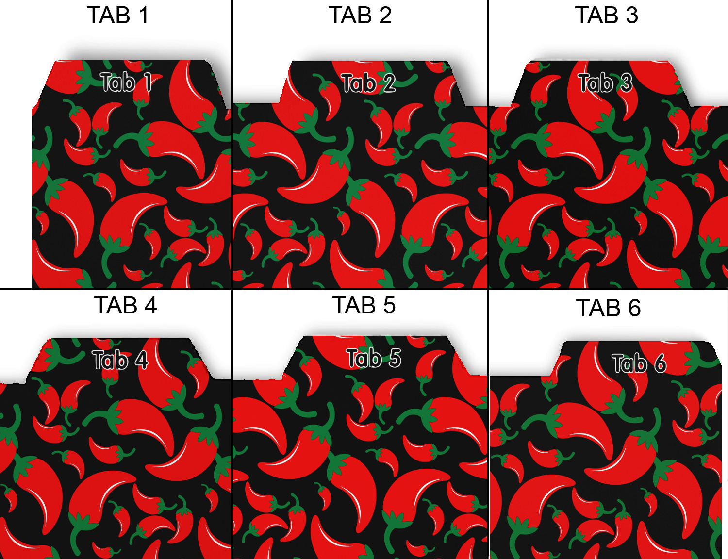 What better way to outfit your new custom personalized binder than a set of custom tab dividers? These can be made to compliment your binder design to take it to the next level!