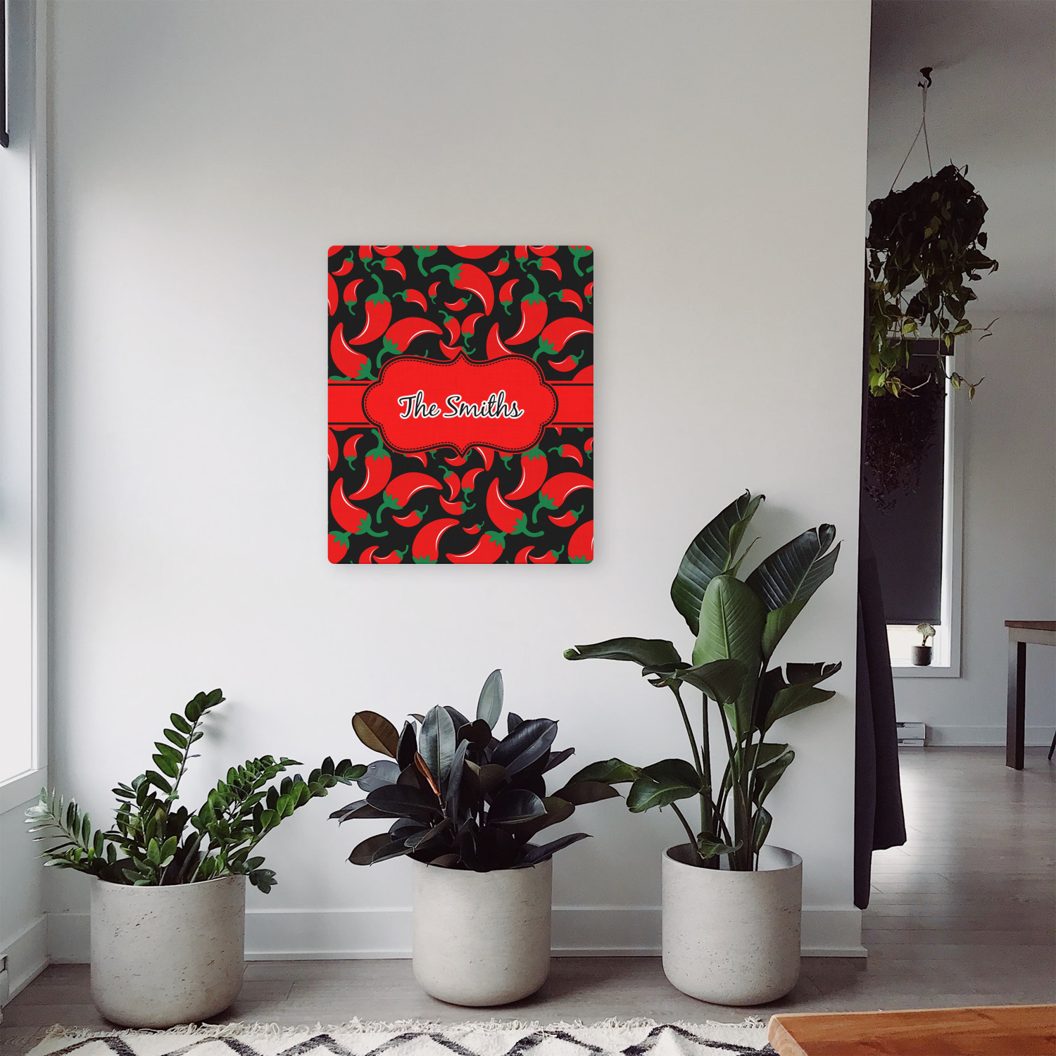 The chili peppers design is part of our fruits and vegetable collection. This design features red chili peppers in various sizes on a black background. The background can be changed to any color. I would recommend trying our white, gray, gold, teal or purple color as background choices.