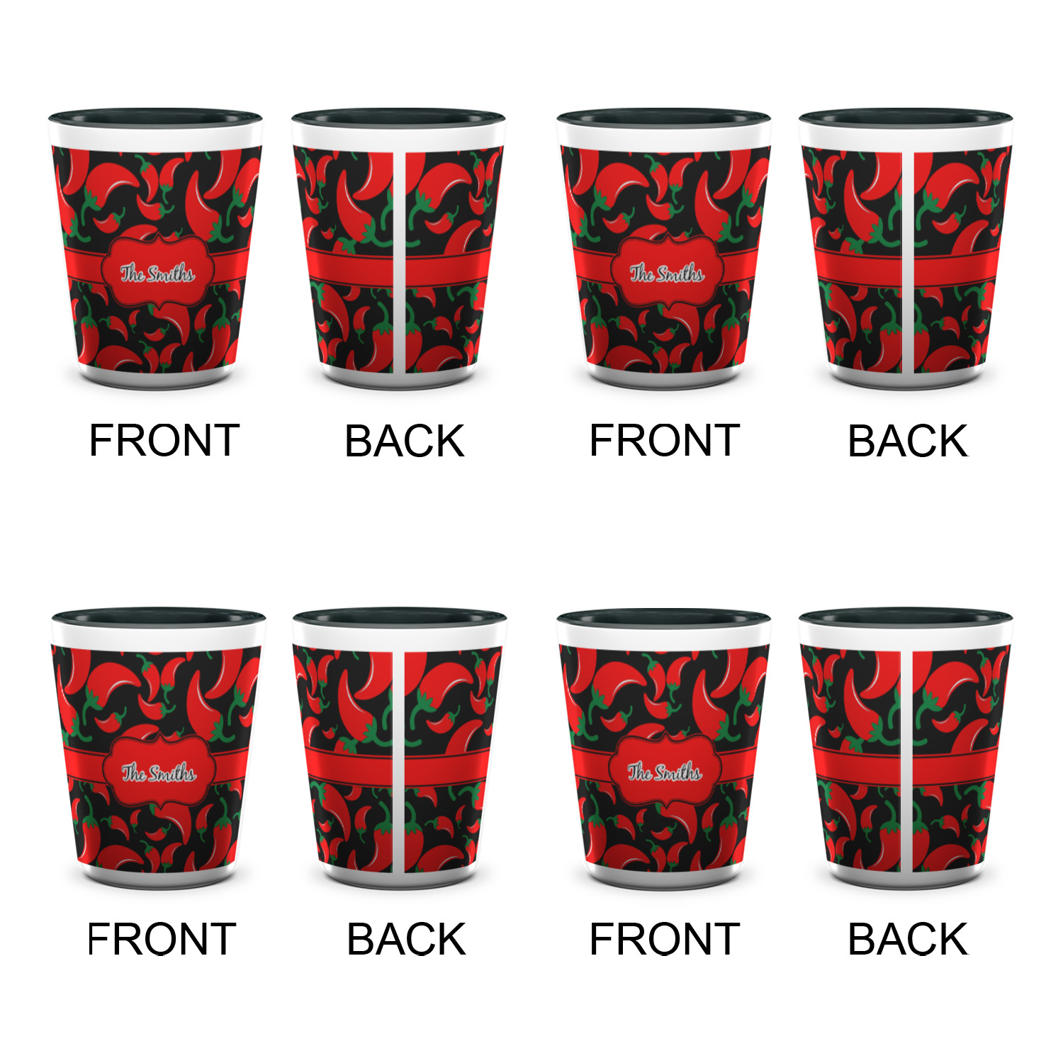 Made from ceramic these shot glasses are printed in full color with the design of your choice. These are a standard 1.5oz size and stand 2.25" tall. Available in a full white ceramic or a two-tone with a black color inside the shot glass. Buy a single or a set of 4, all of which can be designed separately to get you just what you want and need.