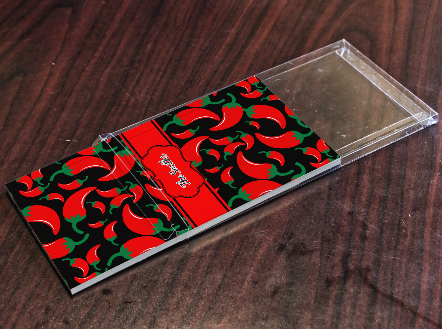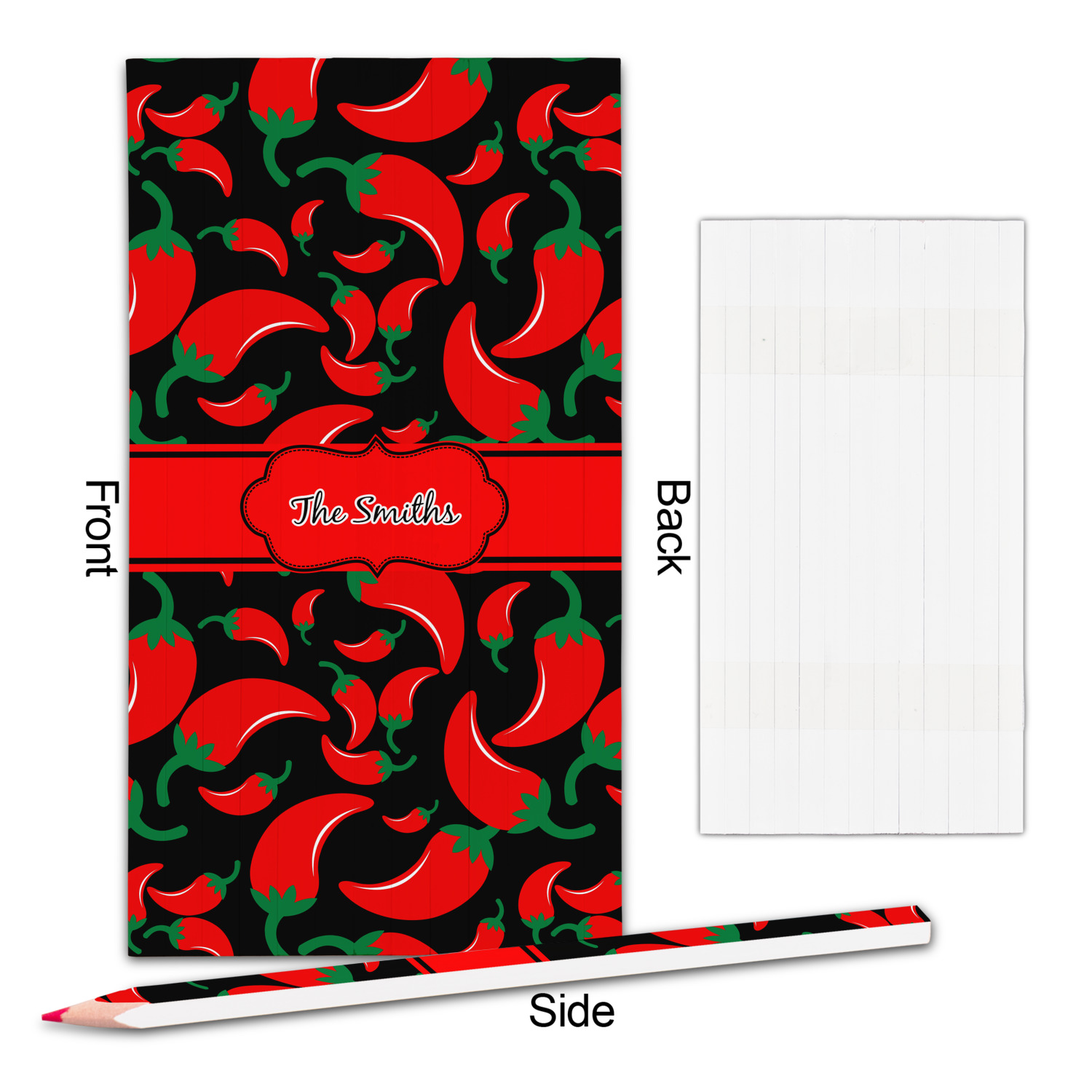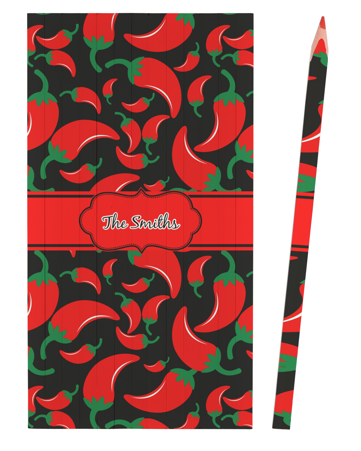 The chili peppers design is part of our fruits and vegetable collection. This design features red chili peppers in various sizes on a black background. The background can be changed to any color. I would recommend trying our white, gray, gold, teal or purple color as background choices.