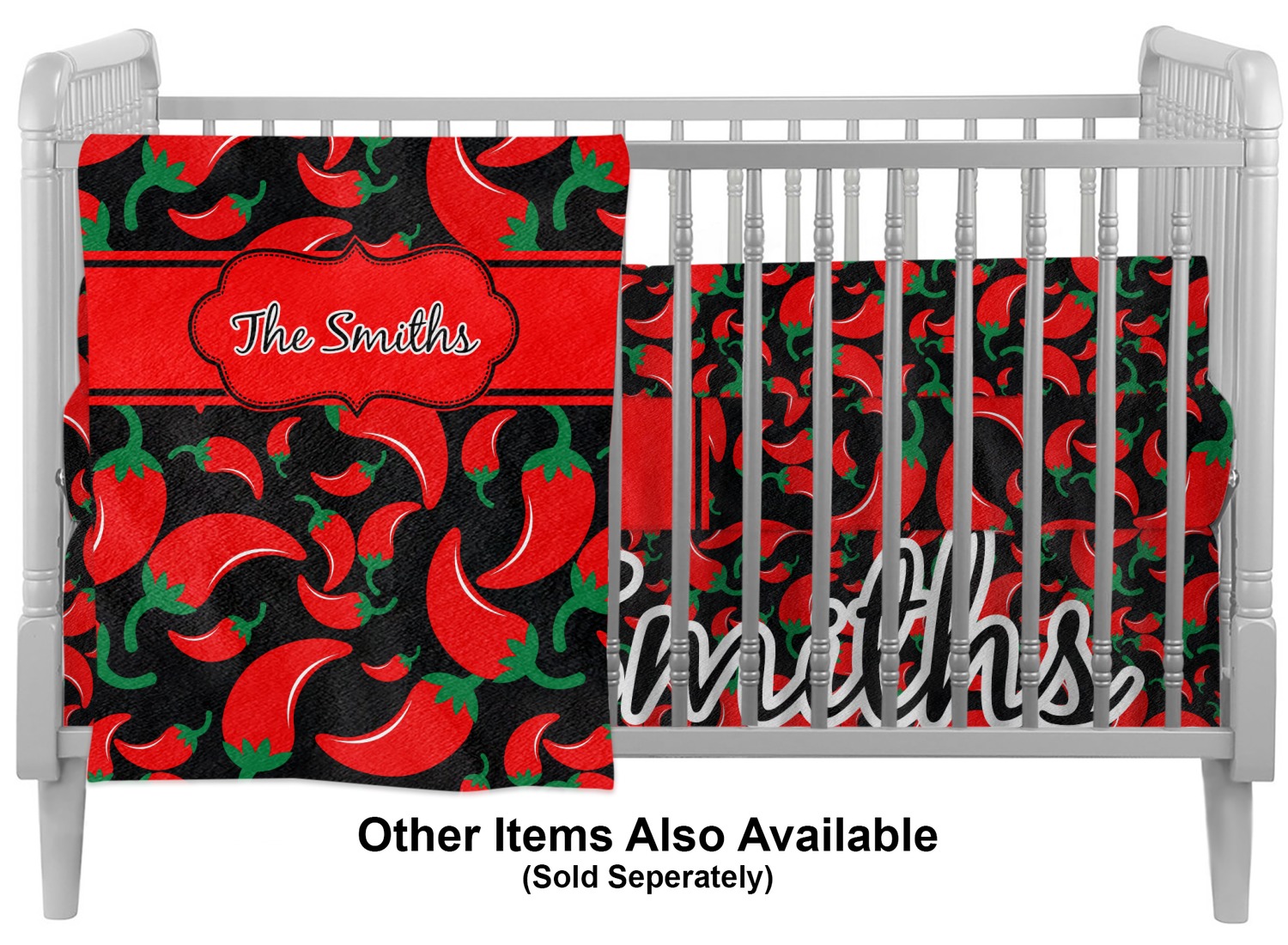 The chili peppers design is part of our fruits and vegetable collection. This design features red chili peppers in various sizes on a black background. The background can be changed to any color. I would recommend trying our white, gray, gold, teal or purple color as background choices.
