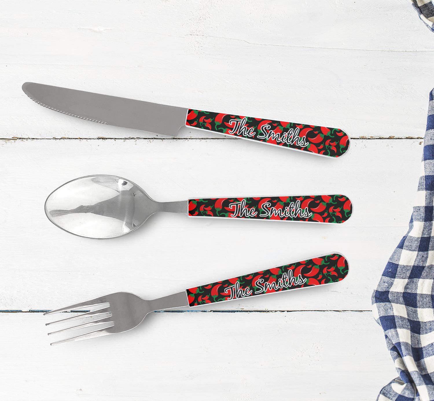 One of those items we all use on a daily basis and never give it much thought - cutlery. Having your own customized set of cutlery adds that special touch. A great addition to our custom plates and drinking pint glasses, this flatware set can be made in the same patterns to match.